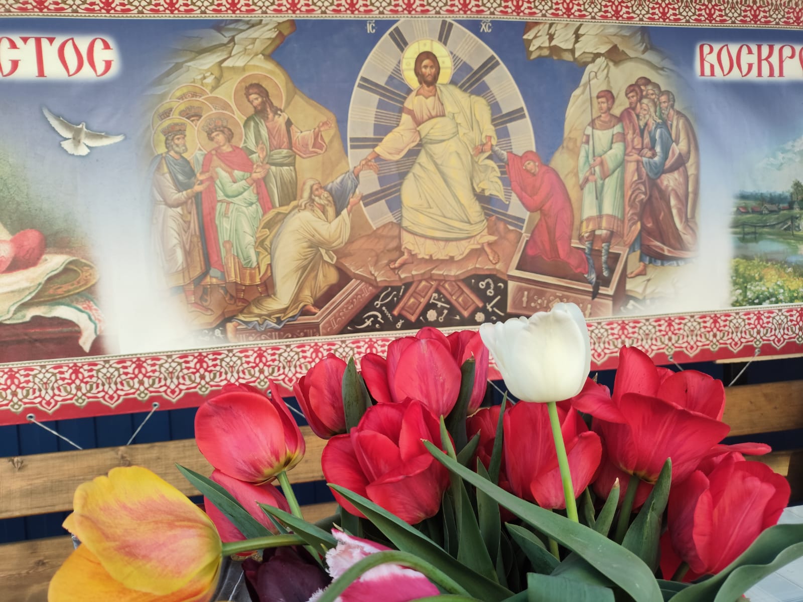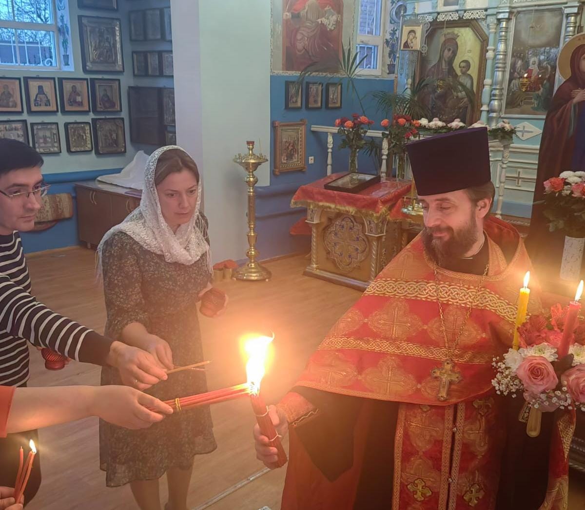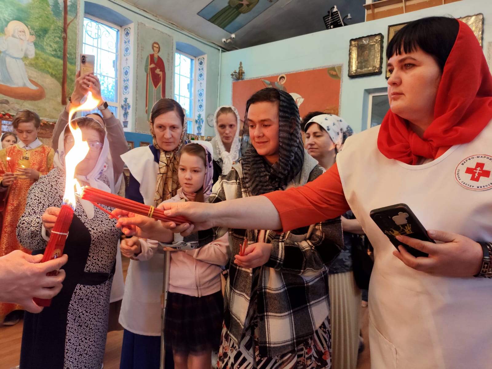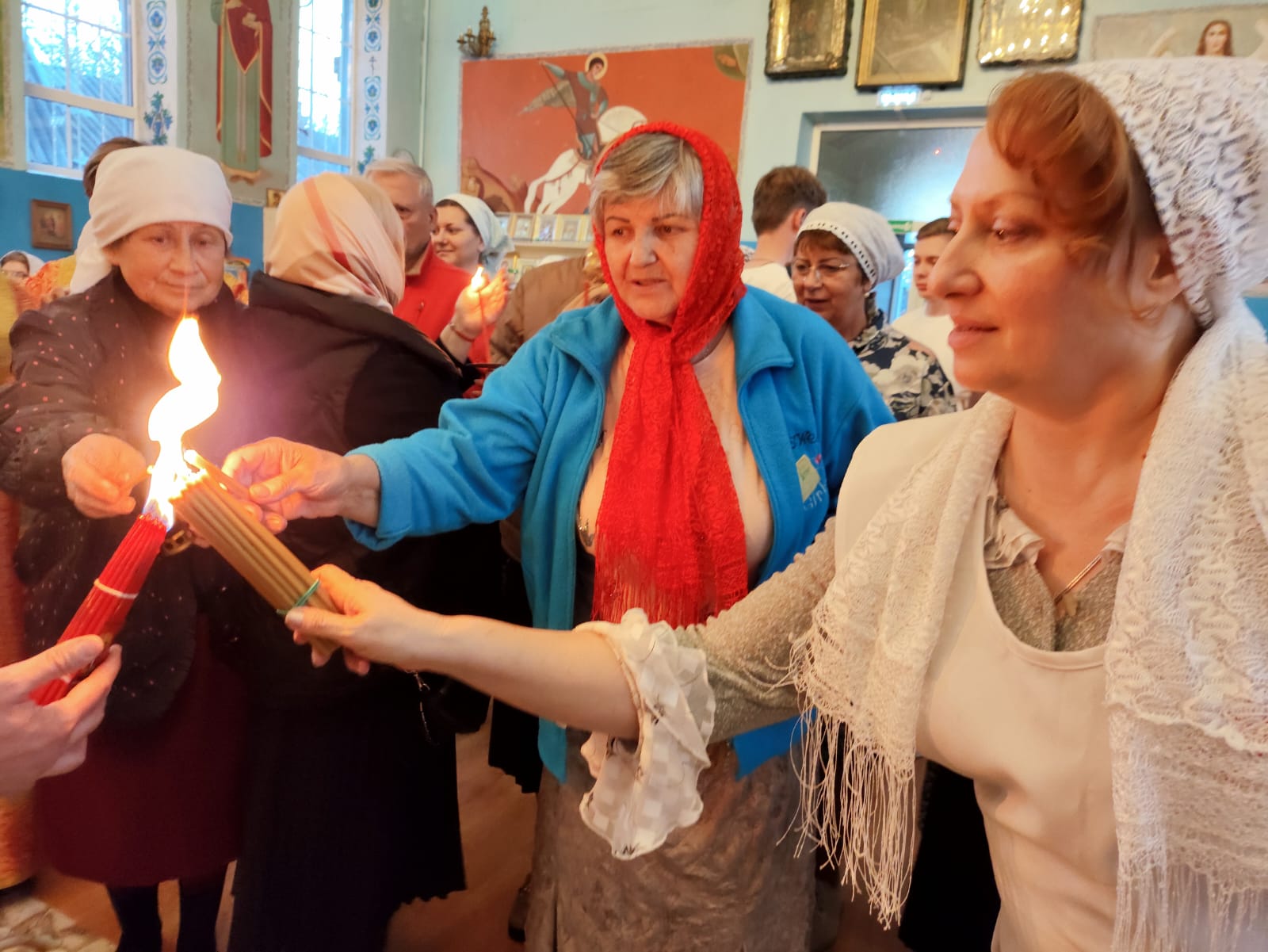 В храме Архистратига Михаила поселка Каменоломни Октябрьского района торжественно встретили Благодатный огонь