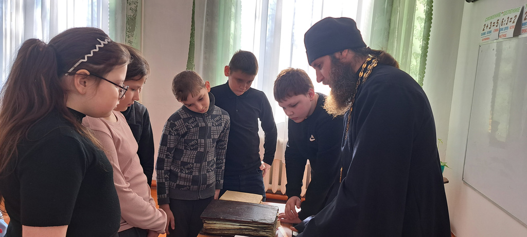 Отец Владимир рассказал юным слушателям о возникновении книгопечатания на Руси и значении духовной литературы в жизни человека. Ребята с большим интересом слушали рассказ священника и получили уникальную возможность прикоснуться к подлинным старинным книгам, возраст которых превышает двести лет. Встреча прошла в теплой и познавательной атмосфере, оставив у детей яркие впечатления.