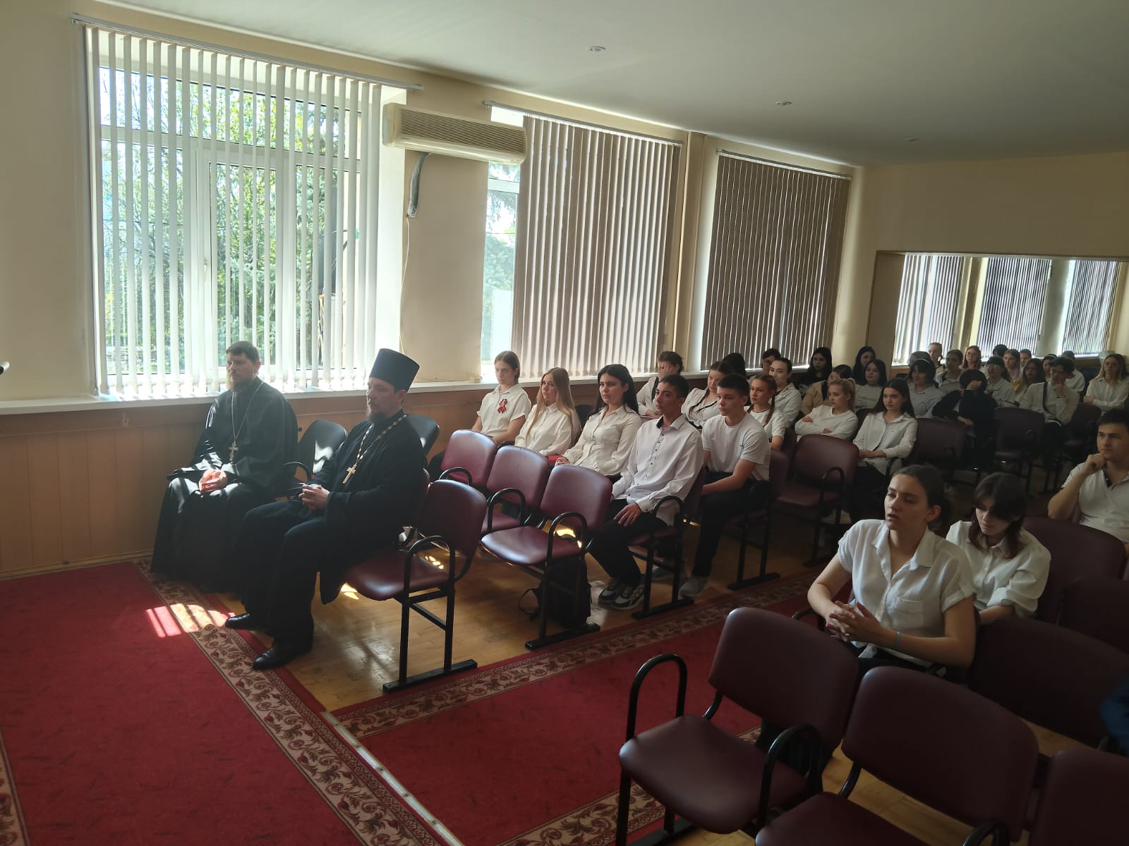 Иерей Роман поздравил обучающихся с прекрасным праздником, рассказал о том, как соблюдение православных традиций способствует укреплению духовных и культурных ценностей, объединяет людей, создавая атмосферу единства и взаимопонимания.