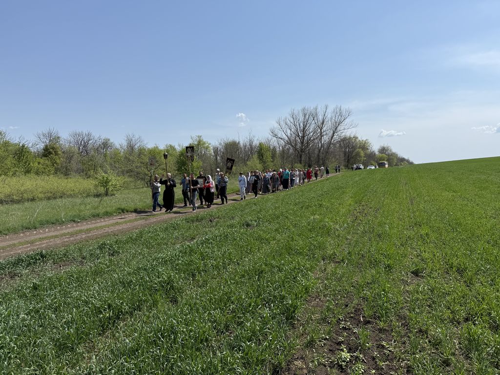 Крестный ход протяженностью 14,5 километров проходил по улицам сл. Никольская, х. Фоминка и местным равнинам.