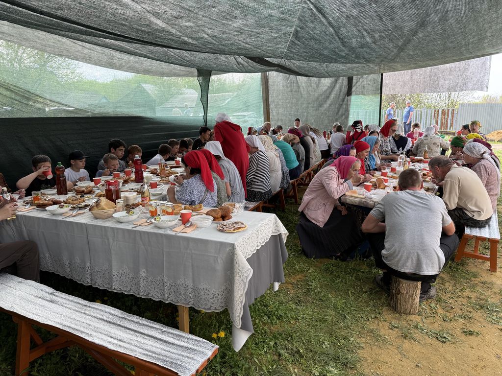 По прибытии в хутор Фоминка настоятель храма Покрова Пресвятой Богородицы иерей Георгий Лукащук совершил малое освящение воды. По завершении богослужения священник поблагодарил потрудившихся в молитвенном шествии и окропил всех святой водой. Затем все были приглашены на общую трапезу.