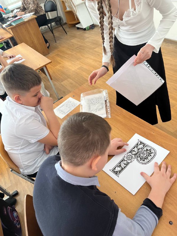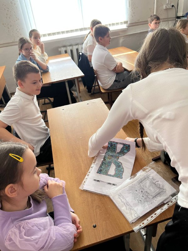 В завершение встречи ребята получили листы с заглавными буквицами и с удовольствием раскрасили их, проявив фантазию.