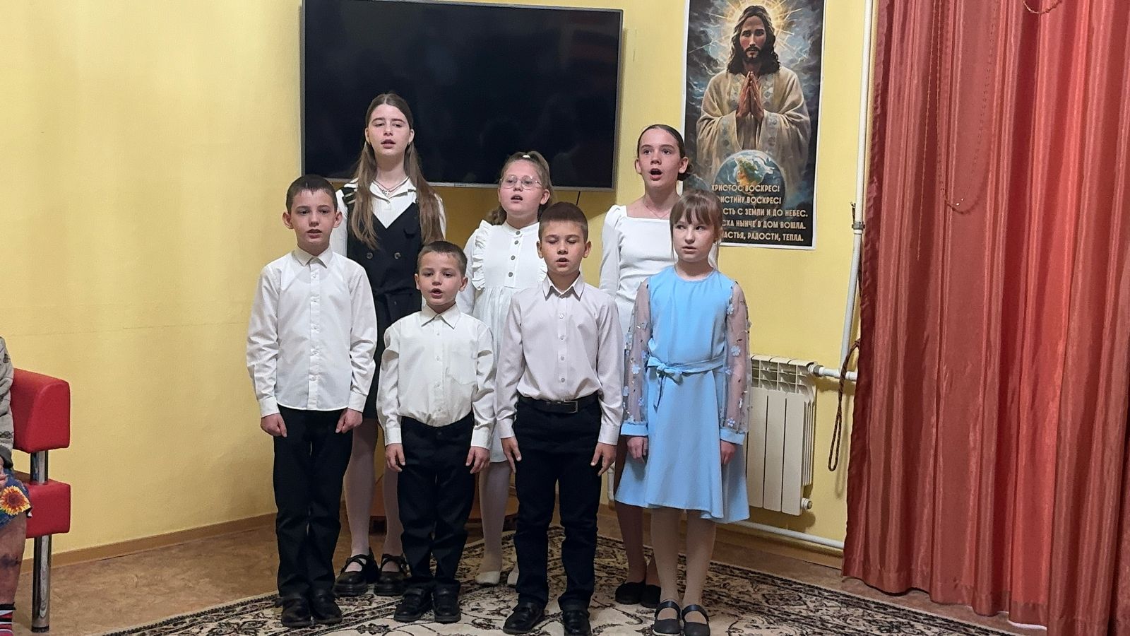 По благословению настоятеля храма Успения Пресвятой Богородицы Глеба Гладышева, воспитанники воскресной школы «Азы Православия» Донецкого Успенского Архиерейского подворья подготовили поздравление для проживающих дома престарелых и инвалидов станицы Гундоровская.