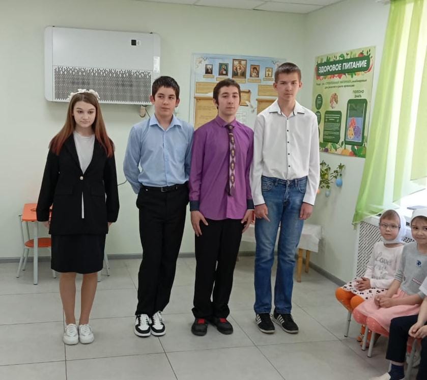 Ребята готовят для воспитанников приюта театрализованное представление, вместе принимают участие в концертных выступлениях и, также, присоединяются к поздравлениям и совместно с отцом Сергием дарят детям пасхальные подарки.