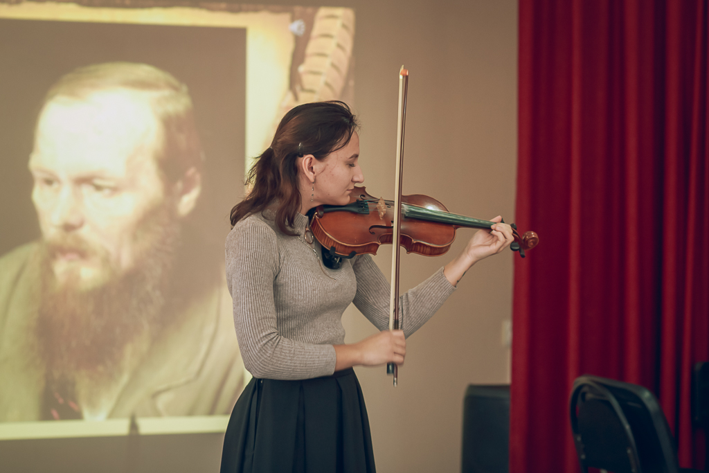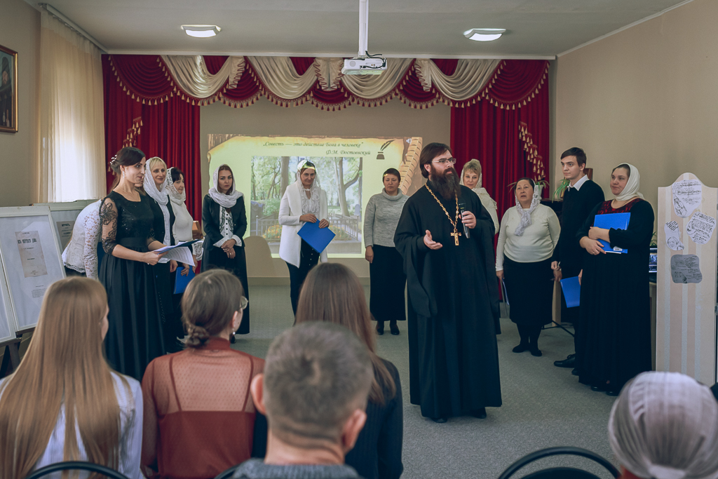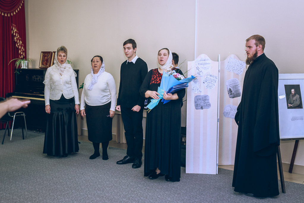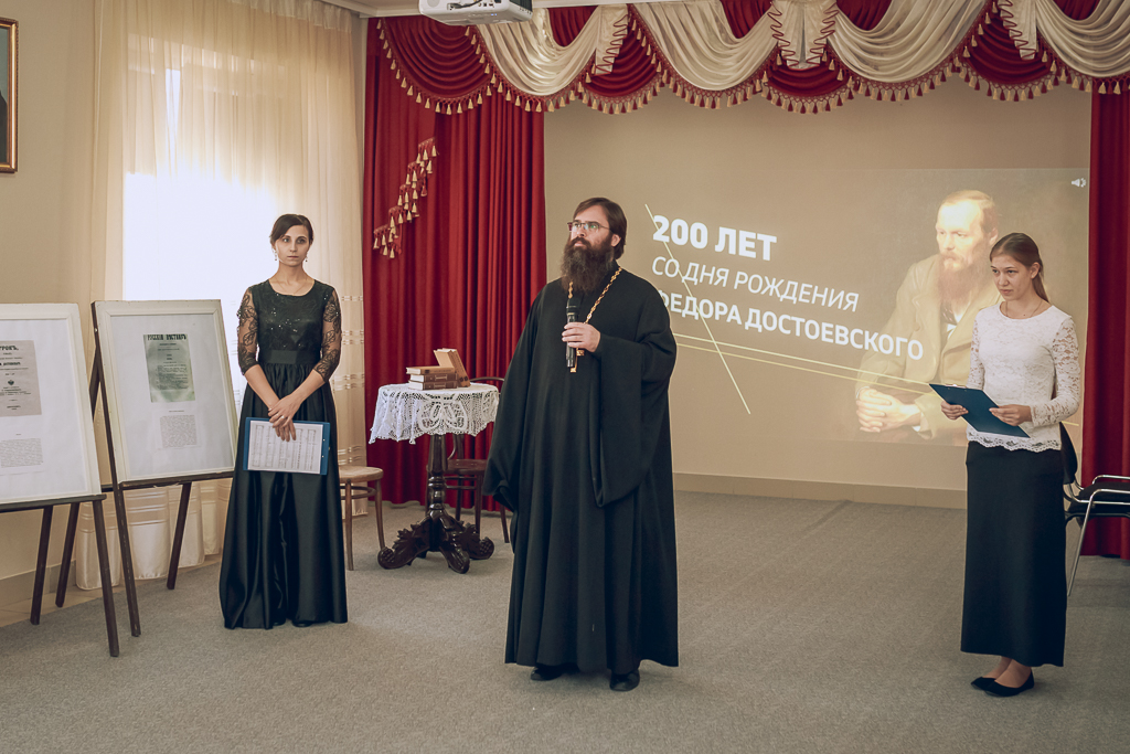 Приветствовал участников и открыл мероприятие настоятель собора иерей Александр Теличкин. Ведущие и выступающие продолжили встречу рассказом о важных моментах биографии Федора Михайловича. Зрителям были представлены фрагменты из фильмов, снятых по произведениям писателя. Участники делились впечатлениями от прочитанных книг.