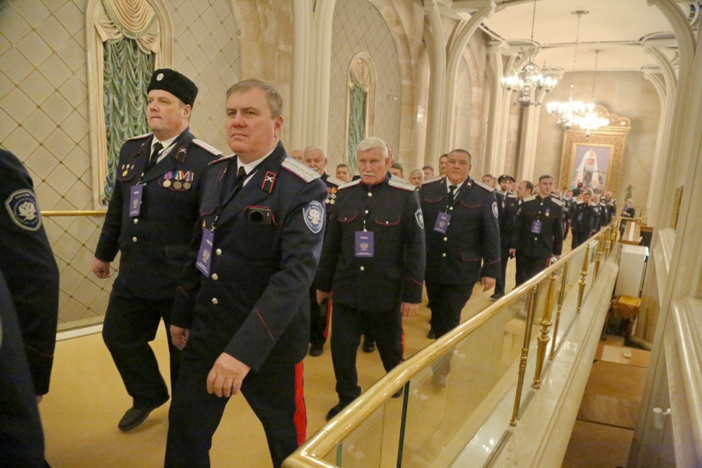 Мероприятие, собравшее представителей всех казачьих войск России от Владивостока до Калининграда, состоялось в зале Церковных Соборов Храма Христа Спасителя.