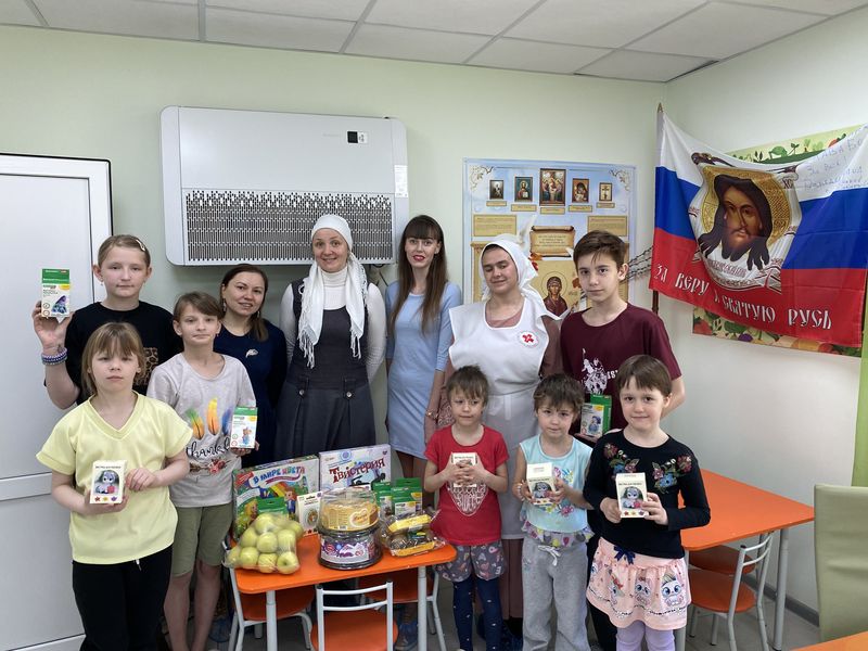 В поздравлении ребят приюта «Огонек» приняли участие сестры милосердия Марфо-Мариинского сестричества и члены молодёжного семейного клуба "Верность" храма Архистратига Михаила п. Каменоломни.