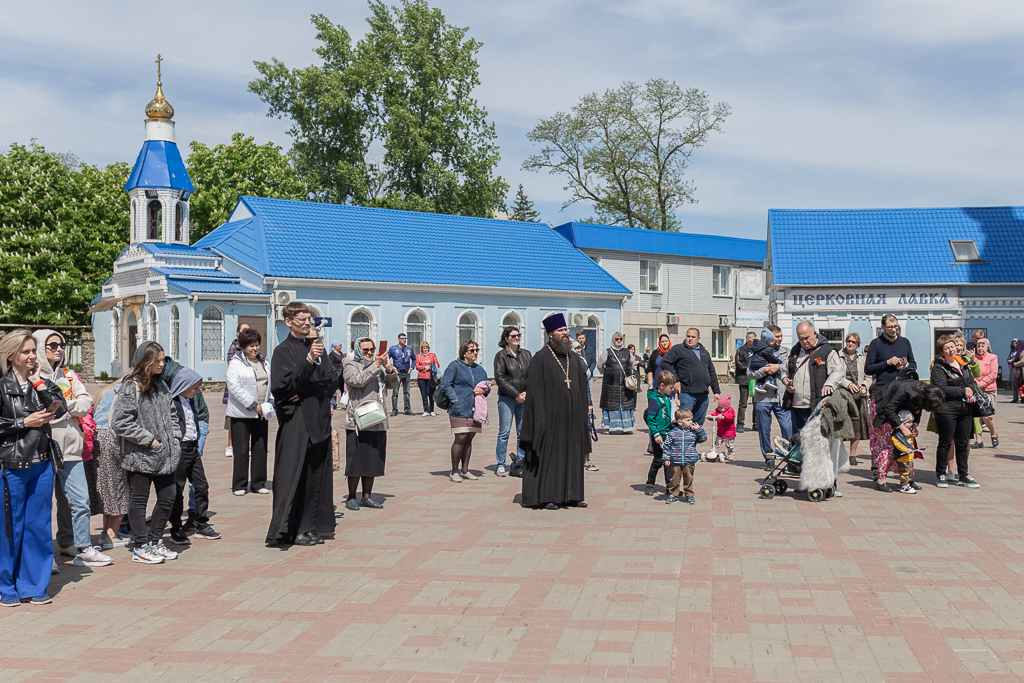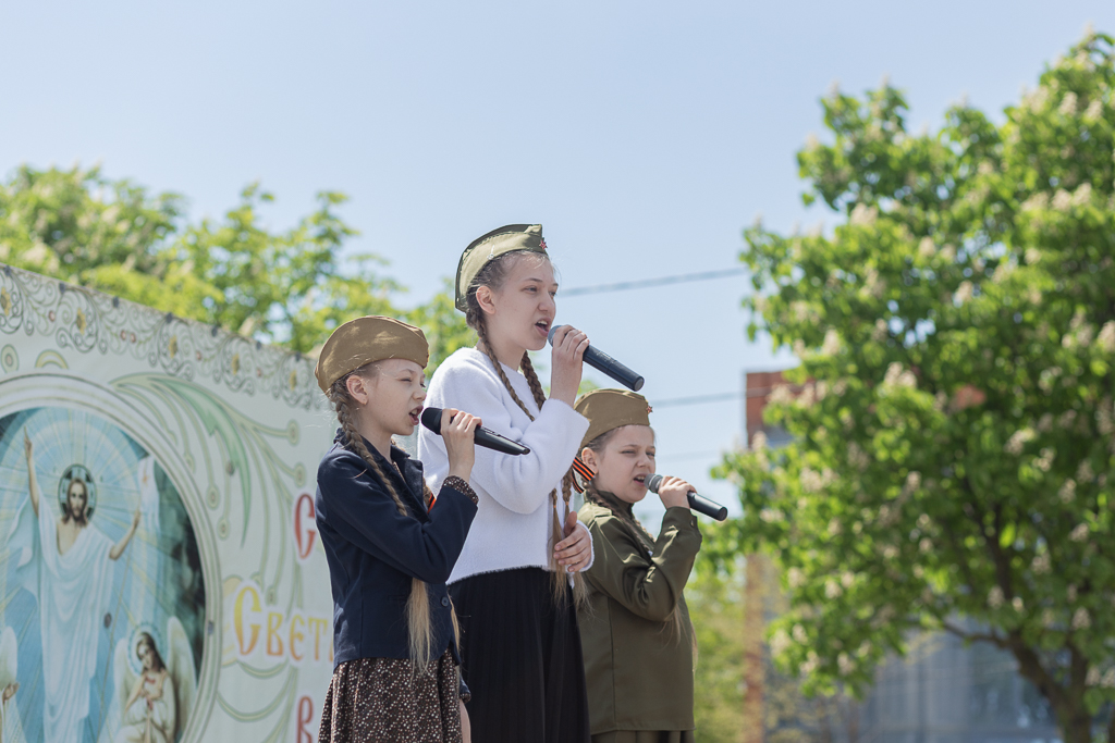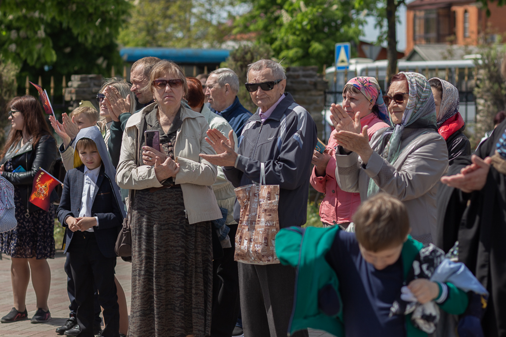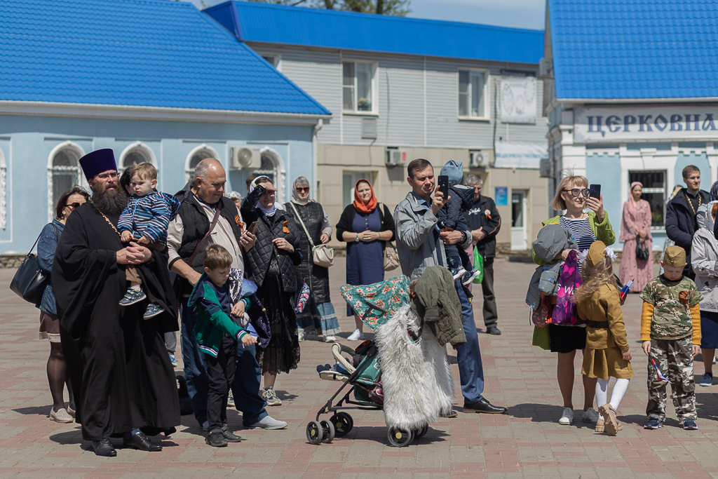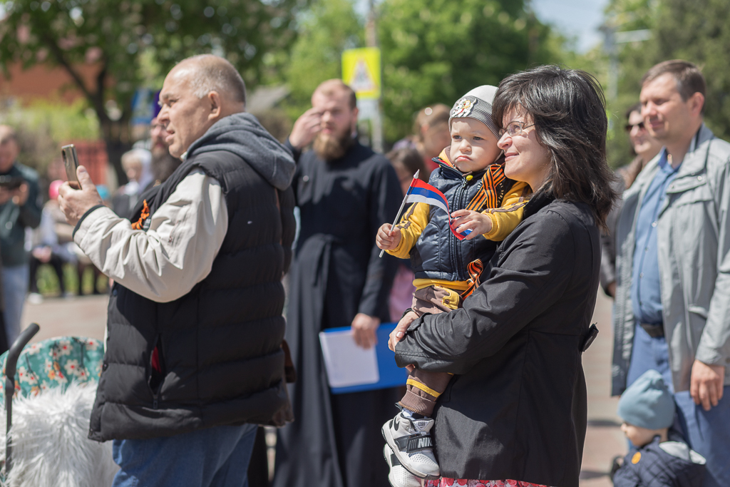 Великий праздник Победы отметили на Соборной площади Покровского кафедрального собора города Шахты. С приветственным словом и поздравлением к участникам обратился настоятель собора иерей Александр Теличкин, священник поздравил всех с Днем Победы, напомнив о важности оберегать и хранить те ценности, за которые гибли наши предки.
