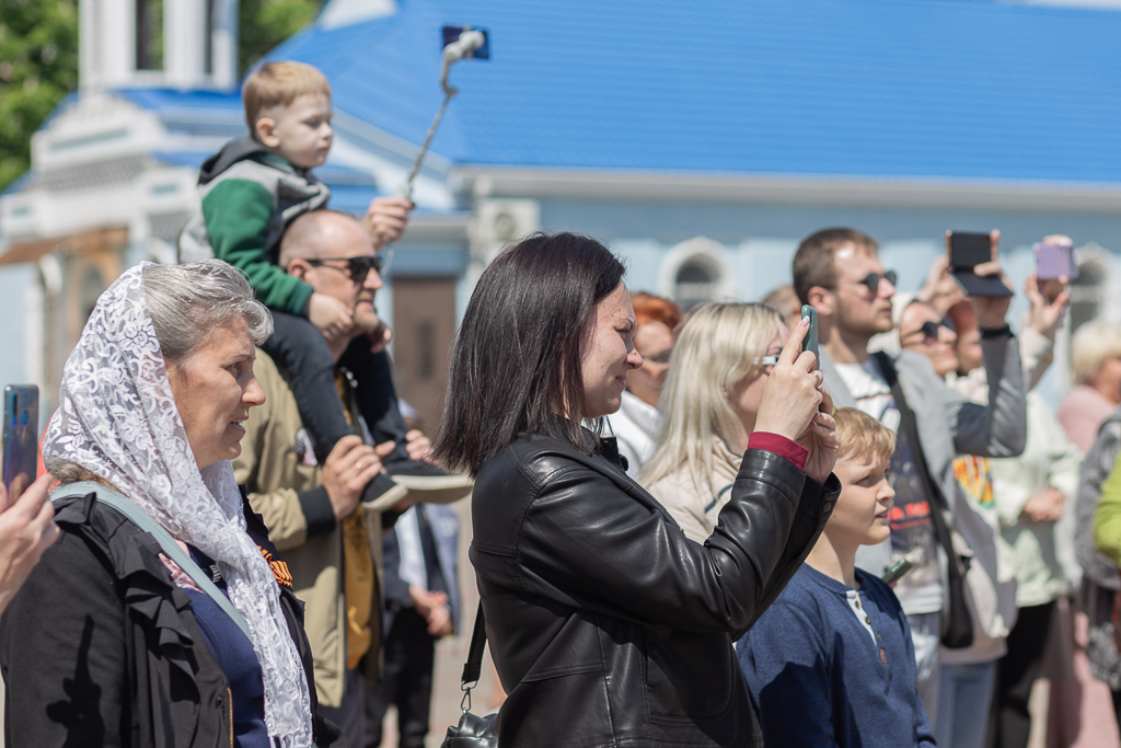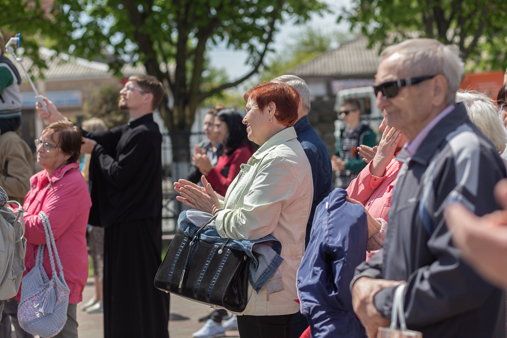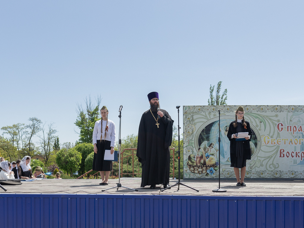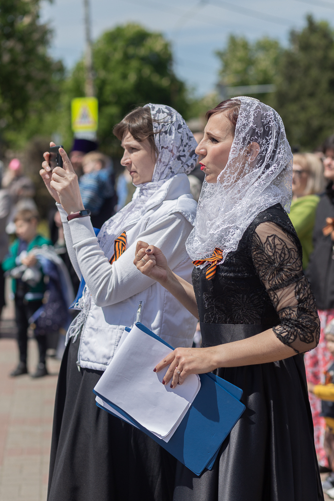 Великий праздник Победы отметили на Соборной площади Покровского кафедрального собора города Шахты. С приветственным словом и поздравлением к участникам обратился настоятель собора иерей Александр Теличкин, священник поздравил всех с Днем Победы, напомнив о важности оберегать и хранить те ценности, за которые гибли наши предки.