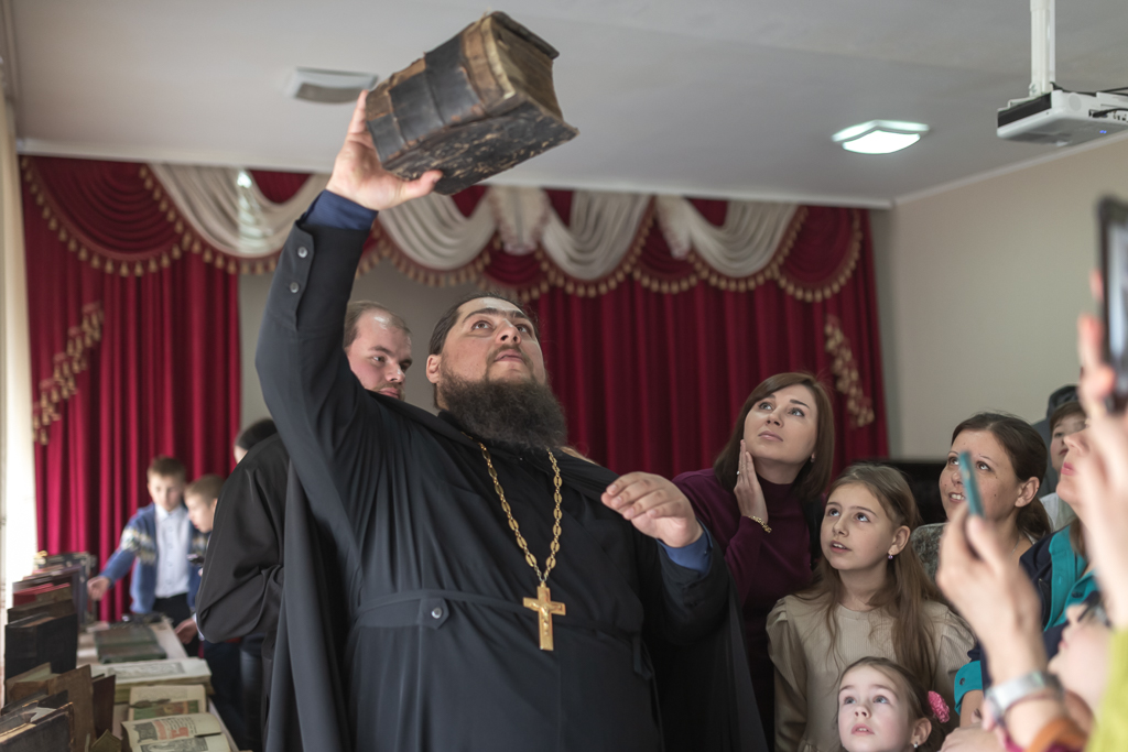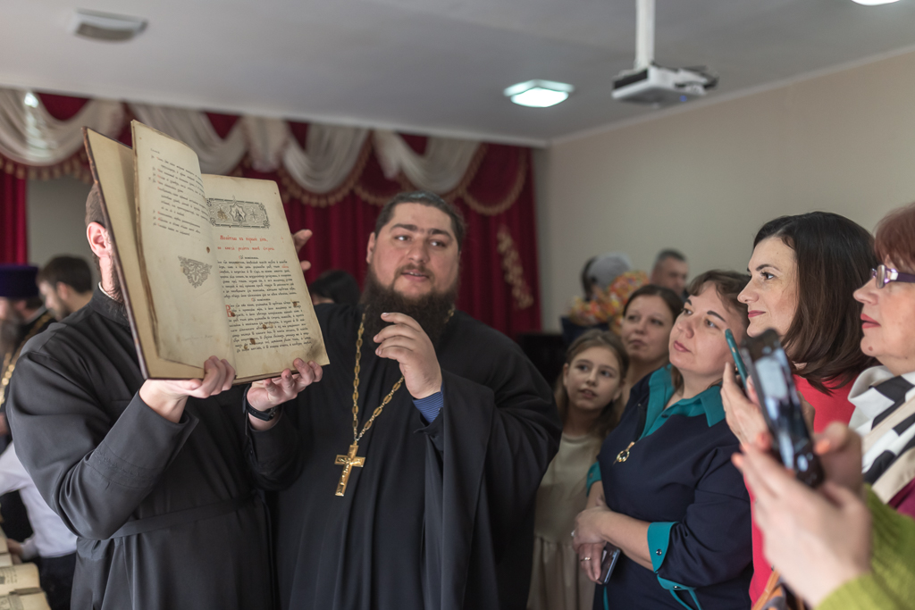 В мероприятии принял участие настоятель храма великомученика Георгия Победоносца хутора Лихой иерей Олег Сударев, который собирает информацию о древних книгах, использовавшихся на Руси во время богослужения. Священник рассказал о значение богослужебных и учительных книг в жизни православного христианина, печатных и рукописных книгах.