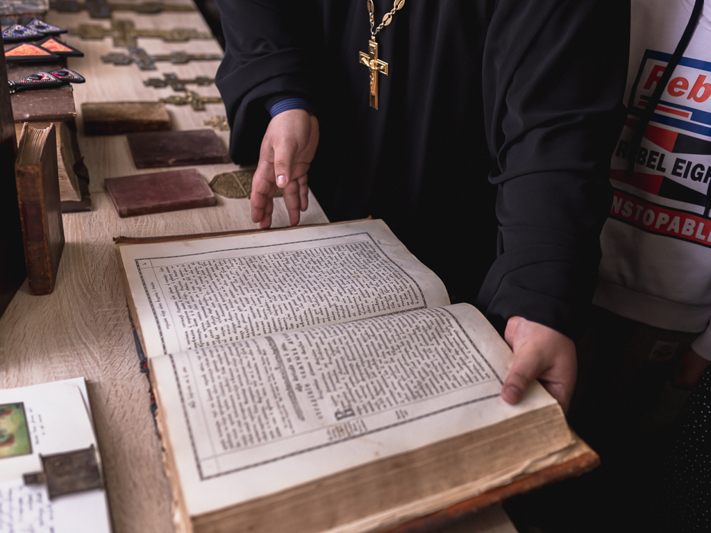 Вниманию всех была представлена экспозиция старинных и современных книг, чёток и богослужебной утвари.