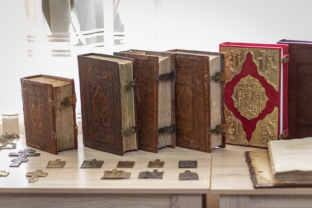 Вниманию всех была представлена экспозиция старинных и современных книг, чёток и богослужебной утвари.