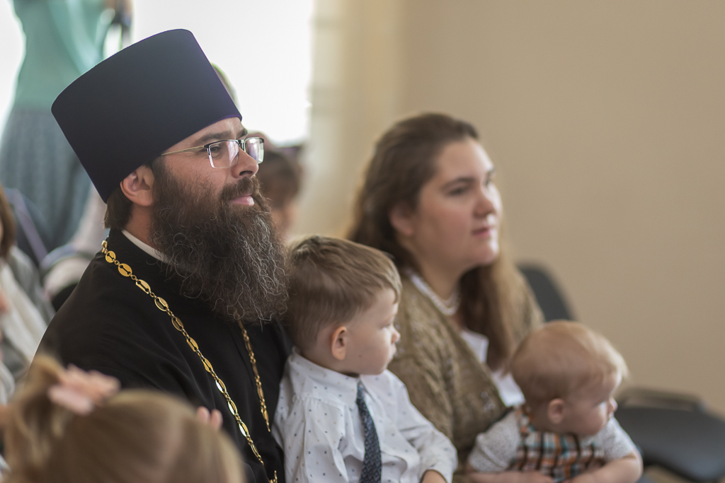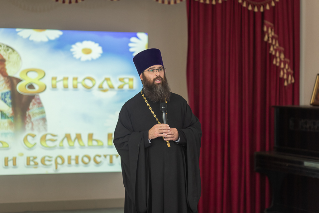 Приветствуя участников и зрителей, воспитанников воскресной школы Покров, их родителей и прихожан Покровского кафедрального собора настоятель иерей Александр Теличкин напомнил о высоком призвании христианской семьи. – В жизни святых благоверных князей Петра и Февронии воплощены черты, которые на Руси всегда связывали с идеалом супружества: благочестие, взаимная любовь и верность, совершение дел милосердия и попечение о различных нуждах своих сограждан. Для христиан семья это малая церковь и Богом благословленный союз, – сказал иерей Александр.