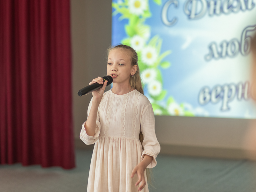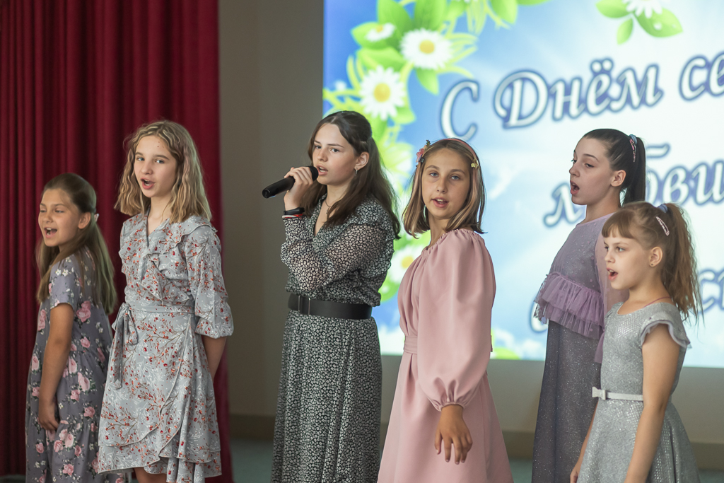 Творческую программу доброго мероприятия наполнили стихи и песни о семейном счастье в исполнении детского хора, солистов, чтецов из старших и младших возрастных групп школы.