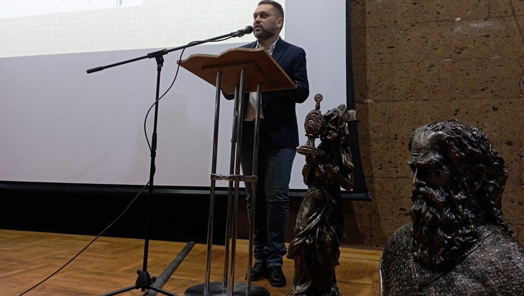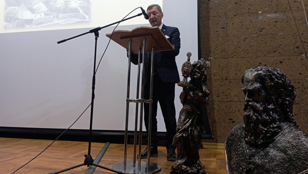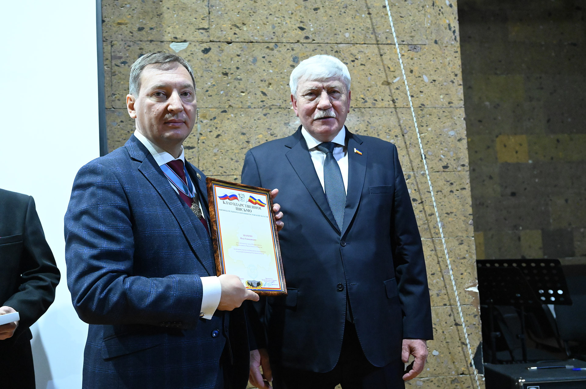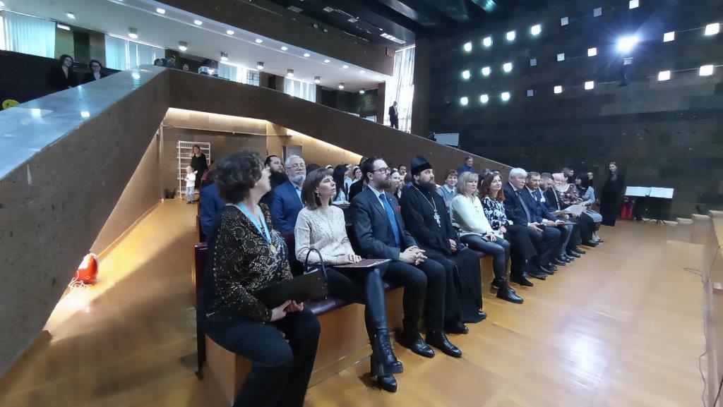 С приветственным словом к собравшимся обратился Заместитель Председателя Законодательного Собрания Ростовской области – председатель комитета по аграрной политике, природопользованию, земельным отношениям и делам казачества Вячеслав Николаевич Василенко, отметивший важность подобных форумов, значимость для региона памяти архиепископа Афанасия (Пархомовича), просветительской деятельности донского духовенства и Императорского Православного Палестинского Общества в прошлом и настоящем. Он подчеркнул, что православная вера является одним из основных столпов российской государственности. И сегодня, в очень непростое для нашей страны время многократно возрастает значение укрепления национального единства: – «Каждому человеку, чтобы преодолевать трудности, необходима духовная и нравственная основа, и ярким примером такого человека, который не просто шёл по праведному пути, но и вел за собой многотысячную паству явился Архиепископ Донской и Новочеркасский Афанасий. Именно он открыл в Новочеркасске отделение Императорского Православного Палестинского Общества, которое стало надежным проводником донских верующих на Святую Землю». Вице-спикер донского парламента поблагодарил Ростовское отделение ИППО за вклад в сохранение единства, работу по православному просвещению, развитию духовного наследия, паломничества и религиозного туризма. Вячеслав Николаевич отметил, что настоящий форум продолжил тематику первых Палестинских чтений в городе Шахты, проведённых в сентябре 2022 года и собравших большое число заинтересованных участников. Затем В. Н. Василенко вручил Благодарственные письма Законодательного Собрания Ростовской области действительным членам ИППО: скульптору, Заслуженному художнику РФ, почётному члену Российской академии художеств Сергею Михайловичу Исакову и Учёному секретарю Ростовского регионального отделения ИППО, старшему преподавателю ИСОиП (филиала) ДГТУ в г. Шахты, древлехранителю Шахтинской епархии Илье Геннадиевичу Шаркову.