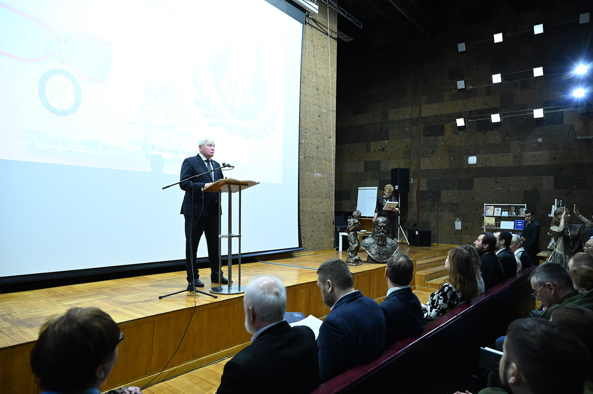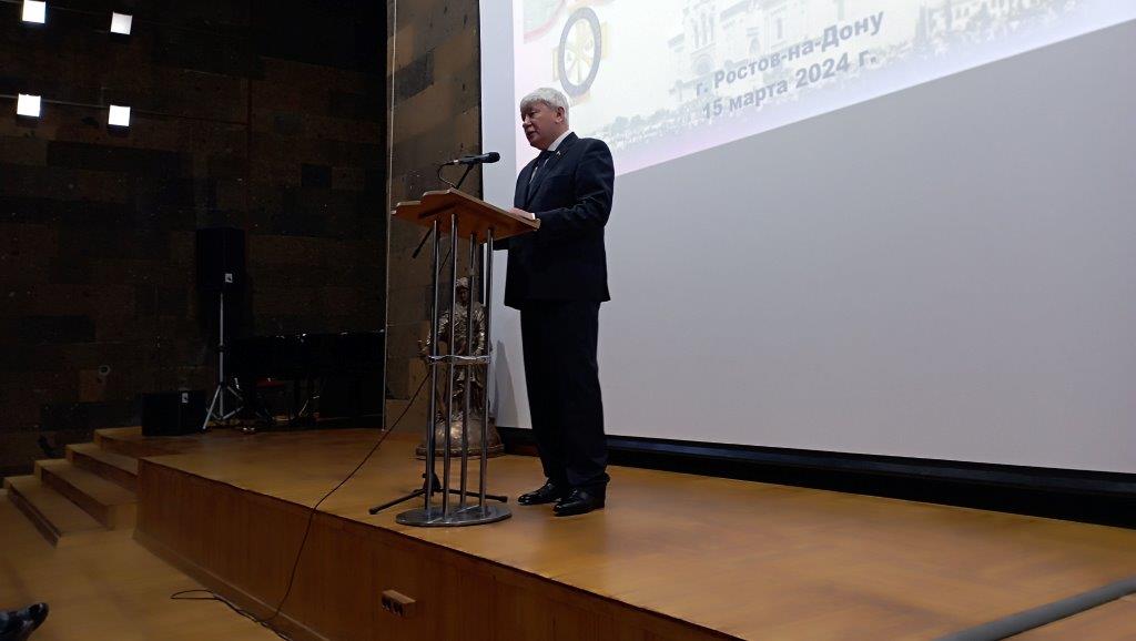 Приветственное слово Главы Администрации г. Ростова-на-Дону Алексея Валентиновича Логвиненко огласила председатель комитета по национальным вопросам, религии, казачеству Администрации г. Ростова-на-Дону Юлия Витальевна Акинина. Приветственные слова руководителей ИППО от ряда региональных и зарубежных отделений и представительств ИППО огласила Председатель Ростовского регионального отделения ИППО Людмила Александровна Лимаренко. В формате видеоприветствия от лица Екатеринбургского отделения ИППО к собравшимся обратился член Общественной палаты Свердловской области, генеральный директор Свердловского областного краеведческого музея им. О. Е. Клера Александр Вячеславович Емельянов.