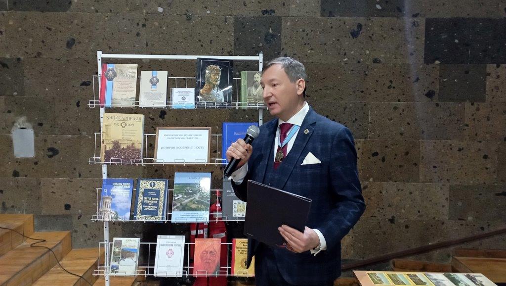 Перед началом форума в зале библиотеки состоялось открытие выставки «Деятельность Императорского Православного Палестинского Общества на Дону и в Приазовье: история и современность» подготовленная Ростовским отделением МОО «ИППО», кафедрой «Православная культура и теология» ИСОиП (филиала) ДГТУ в г. Шахты и Донской государственной публичной библиотекой. На выставке были представлены научные издания ИППО, Ростовского отделения ИППО, творческие сборники действительных членов ИППО от Ростовского отделения – поэтессы, члена союза журналистов России, члена Петровской Академии наук и искусств Елены Степановны Камышной и работы скульптора, Заслуженного художника РФ Сергея Михайловича Исакова. Состоялась презентация двух монографий, выполненных в рамках реализации проекта-победителя конкурса на лучшие проекты фундаментальных научных исследований по теме «Россия и Ближний Восток: исторические, политические, археологические и культурные контакты и связи», проводимого совместно РФФИ и ИППО («Палестина») по теме «Социокультурная, просветительская и организационная деятельность отделов и уполномоченных Императорского Православного Палестинского Общества на Юге Российской империи в конце XIX – начале XX вв.»: