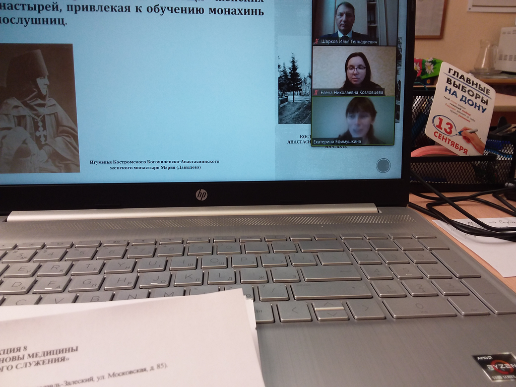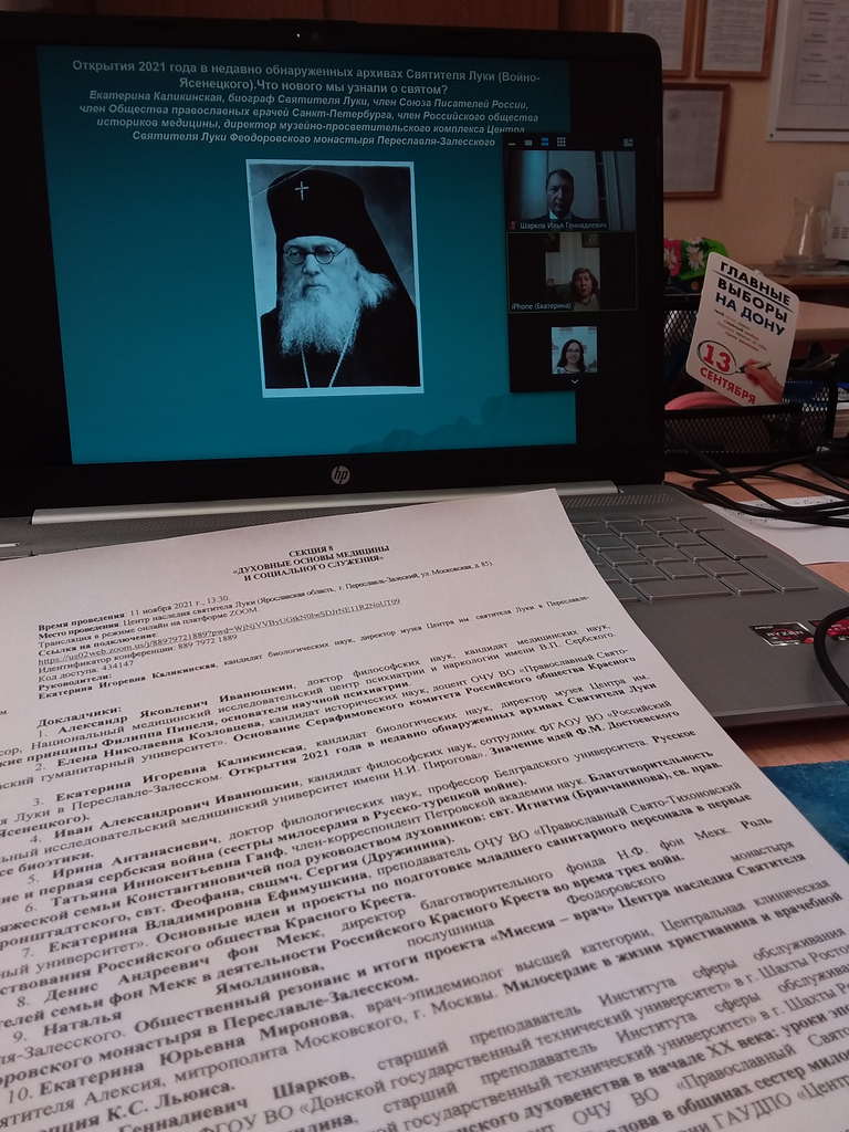 С докладом «Учительное значение социального служения Донского духовенства в начале XX века: уроки эпохи» на секции «Духовные основы медицины и социального служения», проводимой 11 ноября 2021 г. в Центре наследия святителя Луки (Ярославская область, г. Переславль-Залеский) и в режиме онлайн на платформе Zoom, выступил древлехранитель Шахтинской епархии, старший преподаватель Института сферы обслуживания и предпринимательства (филиала) ДГТУ в г. Шахты, секретарь Ростовского отделения Императорского Православного Палестинского Общества Илья Геннадиевич Шарков. В своем выступлении Илья Геннадиевич рассказал о многолетнем участии духовенства Дона в помощи сиротам и вдовам солдат и офицеров, погибших в Русско-японскую войну, о помощи фронту и организации ухода за ранеными в Первую мировую войну, назвал ряд говорящих цифр, раскрывающих масштабы церковного участия в социальном служении тех драматичных лет и привёл конкретные фамилии и факты.