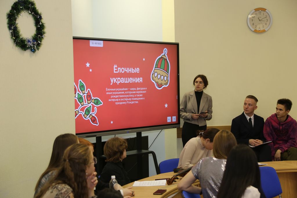 Об истории строительства и значении для христиан всего мира базилики Рождества Христова в Вифлееме участникам форума рассказал студент Валентин Дубинин. «Святая Земля и её Библейские растения как символы в культуре и христианской традиции» – тема доклада студентки Альбины Усок. О Вифлеемской звезде на станицах Евангелия, а также как о символе в мировой культуре рассказала студентка Екатерина Рудова. «Христианство на Ближнем Востоке: история и современность» – тема выступления студента Никанора Кульченко, который поднял тему гонений на христиан в ближневосточных и североафриканских странах. Студентка Рена Манукян представила историю ассирийских рождественских традиций. Интерес всех участников проекта вызвало выступление студентки Дианы Егоренковой, представившей историю и традиции рождественских ёлочных украшений. Диана также приняла участие в выставке-конкурсе рождественских инсталляций и композиций с авторской рождественской игрушкой. Руководителем студенческих докладов являлся старший преподаватель Илья Геннадиевич Шарков.