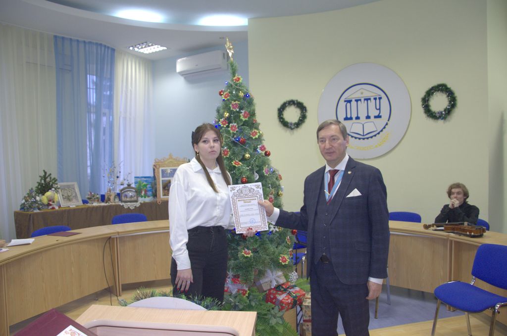 В завершении мероприятия, после того, как участники услышали много интересной и познавательной информации, организаторы пригласили студентов принять участие в Рождественской викторине, которую провели магистрант института Сергей Паскарелов и студентка Шахтинского музыкального колледжа Арина Желтушкина. Призы викторины – часть благотворительной акции: спонсорские средства, за которые они были приобретены, пошли на лечение больных детей.