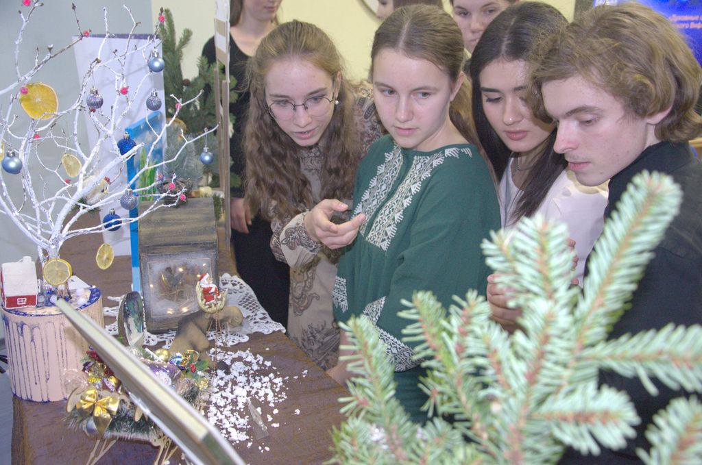 По окончании викторины состоялась презентация выставки рождественских композиций и инсталляций, на которой были представлены тематические работы преподавателей, сотрудников и их детей и студентов. Жюри из преподавателей и студентов музыкального колледжа оценило выставку и вынесло свой вердикт: первое место получила инсталляция кафедры «Православная культура и теология» – «Взгляд из заснеженной России на Рождественский Вифлеем», второе место разделили работы старшего специалиста планово-финансового отдела института Виктории Анатольевны Верецкой и ведущего документоведа Административного отдела Натальи Андреевны Валовой. Третье призовое место досталось работе доцента кафедры «Конструирование, технологии и дизайн» Марины Владимировны Бырдиной.