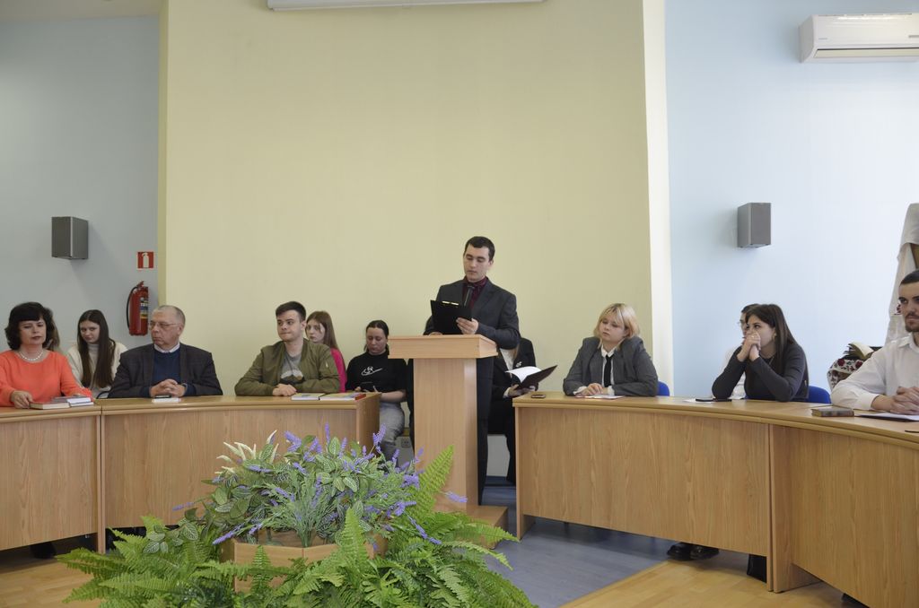 С приветственным словом к собравшимся в аудитории с большим круглым столом студентам и преподавателям обратился заместитель начальника отдела социально-политических коммуникаций Администрации г. Шахты, кандидат медицинских наук Станислав Николаевич Сергеев, отметивший важность обсуждения темы книжной культуры в студенческой среде, подчеркнувший нравственную ценность православной литературы. Представитель Администрации города передал слова приветствия от городского руководства, поблагодарил организаторов за приглашение на мероприятие и отметил значимость для города, результативность и воспитательное значение проводимых кафедрой «Православная культура и теология» научно-просветительских проектов.
