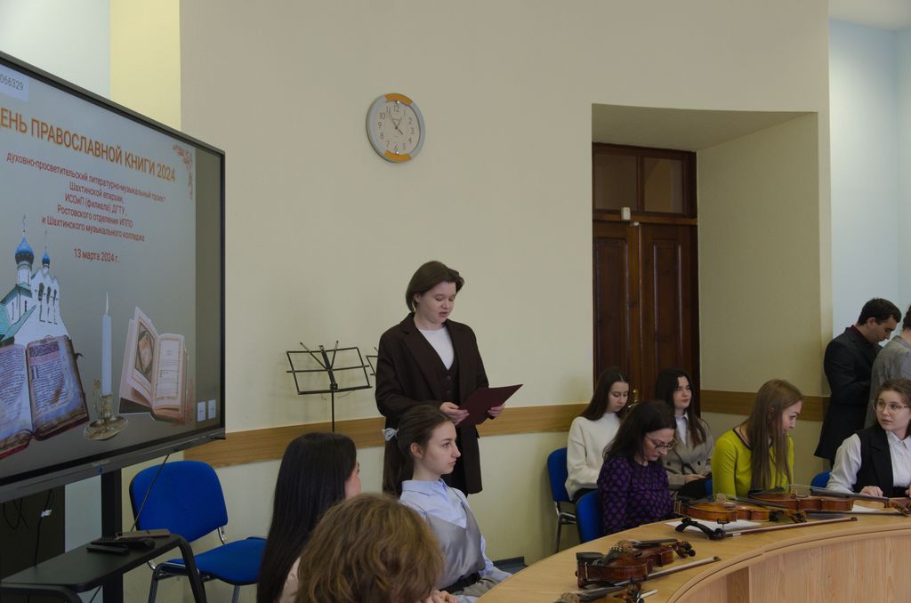 По благословению Преосвященнейшего Симона, епископа Шахтинского и Миллеровского, 13 марта 2024 года в Институте сферы обслуживания и предпринимательства (филиале) ДГТУ в г. Шахты состоялось традиционное ежегодное научно-просветительское, литературно-музыкальное мероприятие «День православной книги 2024», посвящённое одноимённому церковно-общественному празднику, отмечаемому в Российской федерации с 2009 года.