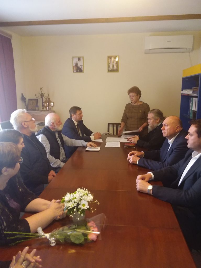 С отчетами о деятельности выступили: Председатель отделения Л.А. Лимаренко, секретарь отделения, древлехранитель Шахтинской епархии Илья Геннадиевич Шарков, члены Общества: настоятель Скорбященского храма г. Ростова-на-Дону протоиерей Вадим Толмачев, заслуженный художник РФ, скульптор Сергей Михайлович Исаков, генеральный директор ООО «Ростовгипрошахт» Валерий Петрович Гурин.