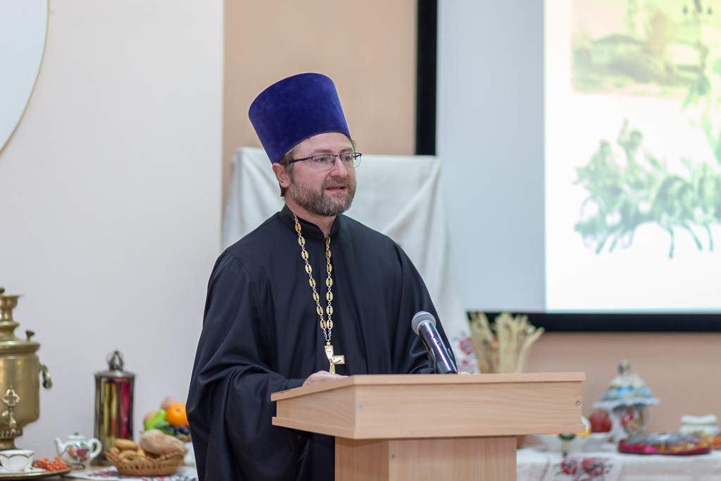 Клирик храма Вознесения Господня г. Шахты иерей Виталий Крендясов поприветствовал собравшихся от лица Шахтинской епархии, отметил актуальность темы форума и подчеркнул, что никакие электронные технологии никогда не заменят живое и непосредственное общение и разговор за чашкой чая. Священник пожелал всем участникам мероприятия доброго здоровья, постижения глубин национальной духовной культуры и возрастания в добродетелях.