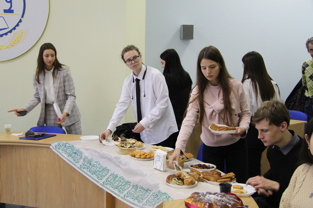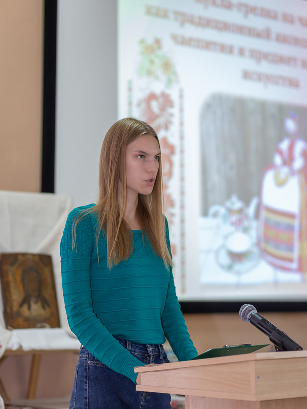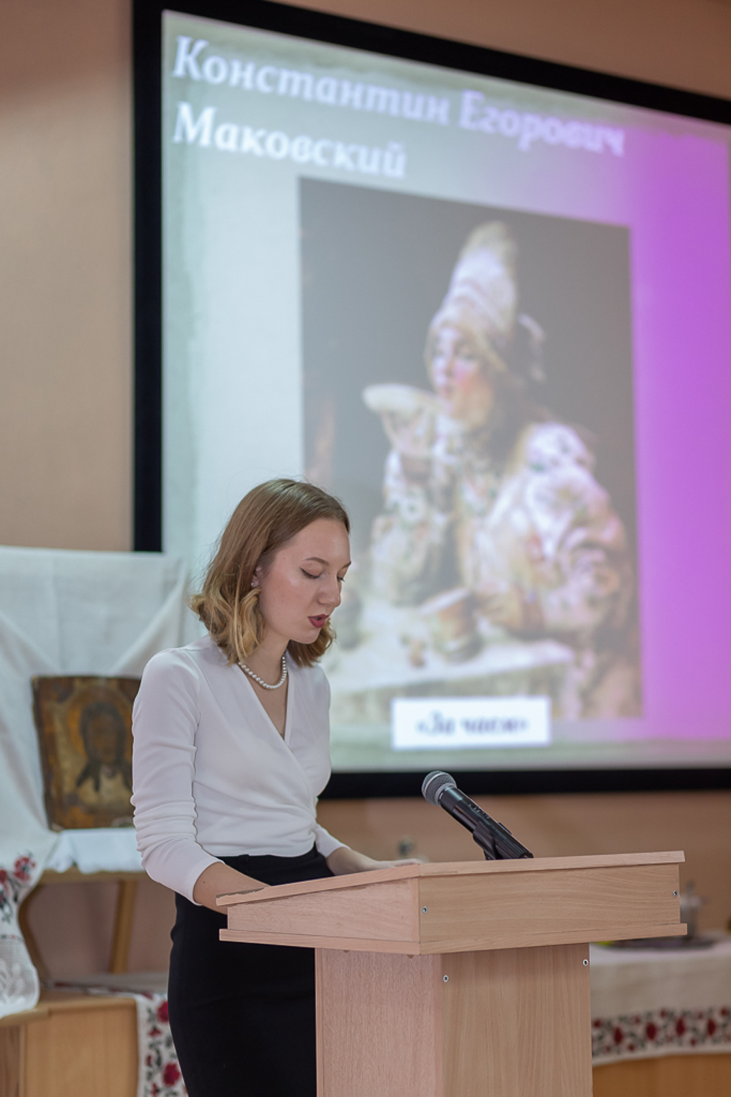 Тему чаепития как объединяющей традиции в своем выступлении раскрыла бухгалтер первой категории ИСОиП (филиала) ДГТУ Виктория Анатольевна Верецкая. Историю появления чая в России собравшимся поведала студентка ИСОиП (филиала) ДГТУ Кондратьева Лидия. О дворянском, купеческом и крестьянском отечественных чаепитиях рассказала студентка Флора Кравцова, историю самовара в мире и в России представил студент Анатолий Колодяжный. Кукла-грелка на чайник как традиционный аксессуар русского чаепития и предмет народного искусства была представлена в выступлении студентки Марии Герасимовой. Русское чаепитие в произведениях отечественной живописи стало темой доклада магистранта Натальи Прудовой. О традициях русской благотворительности на примере меценатства семьи русских кондитерских фабрикантов Абрикосовых рассказала студентка Анастасия Бондар. Все доклады и выступления сопровождались красочными презентациями. Руководитель студенческих докладов старший преподаватель И.Г. Шарков.