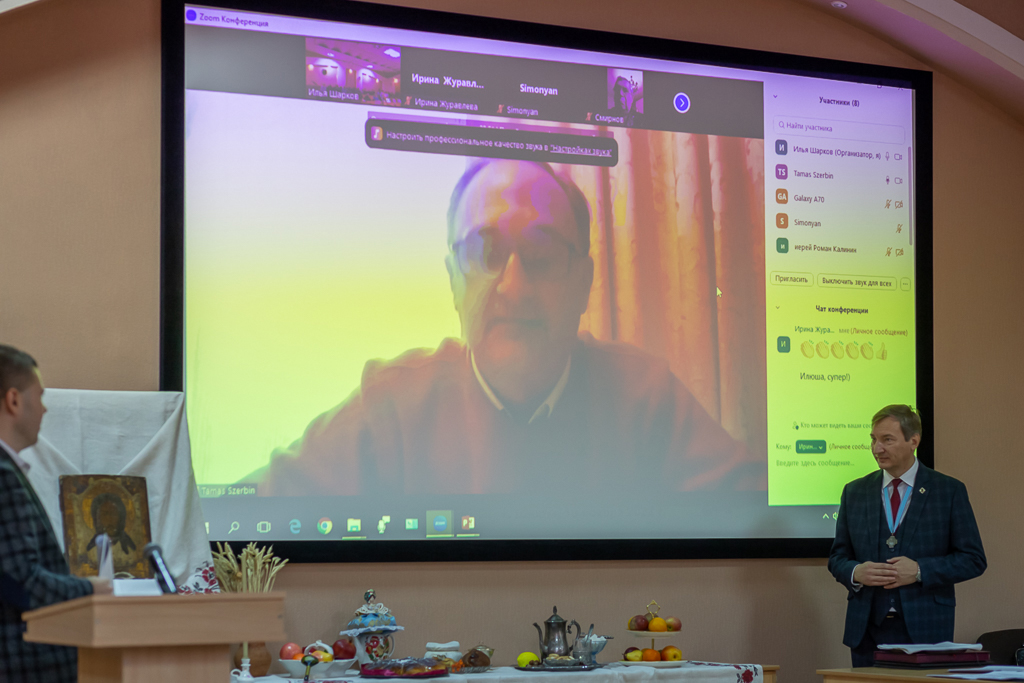 Член Венгерского представительства ИППО Михаил Шубик из Будапешта передал приветствие председателя этого европейского отделения Общества доктора Тамаша Сербина. В своем выступлении М. Шубик отметил, что Венгерское представительство ИППО способствует развитию и укреплению добрых и уважительных отношений между нашими странами и народами. Гость из Будапешта отметил важность межкультурной коммуникации, а также, что в Венгрии существует государственная полномочная структура, охраняющая христианскую нравственность и традиции. Рассказал о венгерских национальных традициях, способствующих коммуникации и привел интересный личный пример бережного отношения к семейным реликвиям и традициям, связанным с русским чаепитием: продемонстрировал полуторавековую чайницу фарфоровой фабрики М.С. Кузнецова, много лет хранящуюся в его семье.