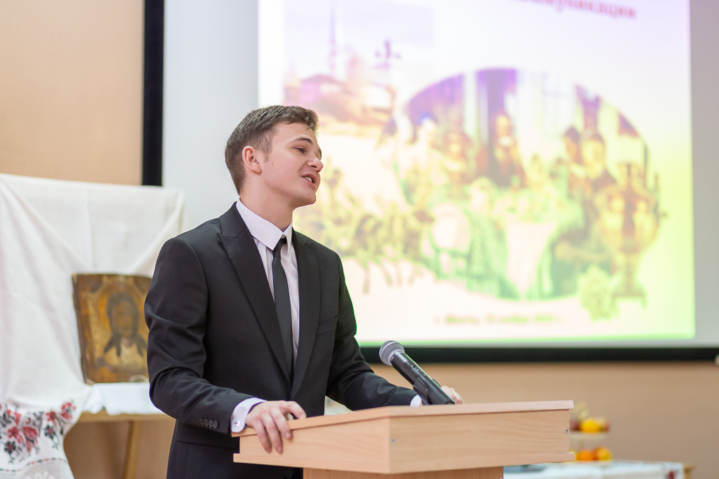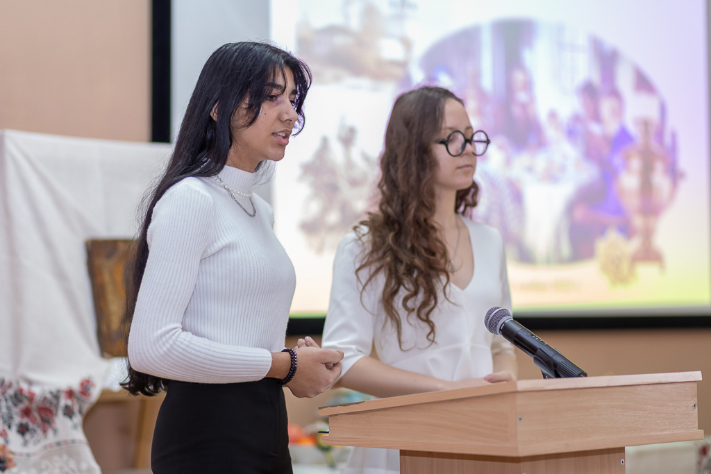 От лица Главы Администрации г. Шахты Андрея Владимировича Ковалева к собравшимся с приветственным словом обратилась руководитель его аппарата Наталья Тимофеевна Обоймова. Сити-менеджер отметил важность духовного просвещения молодежи, обращения к национальным традициям и плодотворный многолетний опыт сотрудничества городской Администрации с организаторами просветительского проекта. Андрей Владимирович подчеркнул, что участие студентов, членов научного кружка «Православный Восток» кафедры «Православная культура и теология» ИСОиП (филиала) ДГТУ в ряде ставших городскими мероприятий духовно-нравственной и церковно-исторической тематики является важным фактором, влияющим на формирование благополучного социального климата в городе и регионе. Наталья Тимофеевна от себя отметила, что избранная интересная тема форума в неформальном ключе раскрывает важные черты нашего народа и помогает лучше осознать менталитет и духовное богатство россиян.