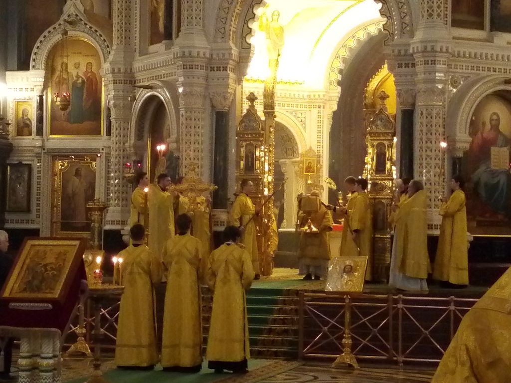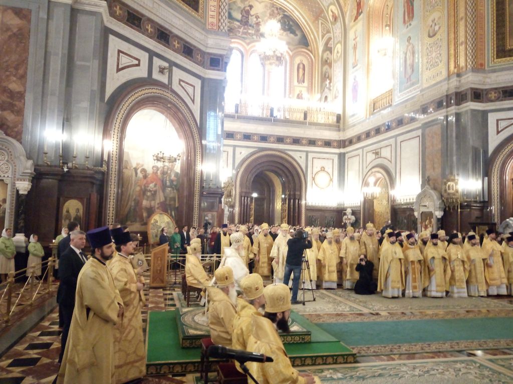 Богослужение возглавил святейший патриарх Московский и всея Руси Кирилл в сослужении с сонмом верующих и гостей столицы, кульминацией соборного служения стало совместное причастие истинного Тела и Крови Господа нашего Иисуса Христа всех верных чад матери Церкви, в конце Литургии святейший патриарх Кирилл обратился с пастырским словом ко всем молящимся, призывая верующих продолжать свое спасительное служение во благо спасения души и духовного роста, напоминая о необходимости постоянного самопонуждения и жертвенного служения в деле спасения ближних.