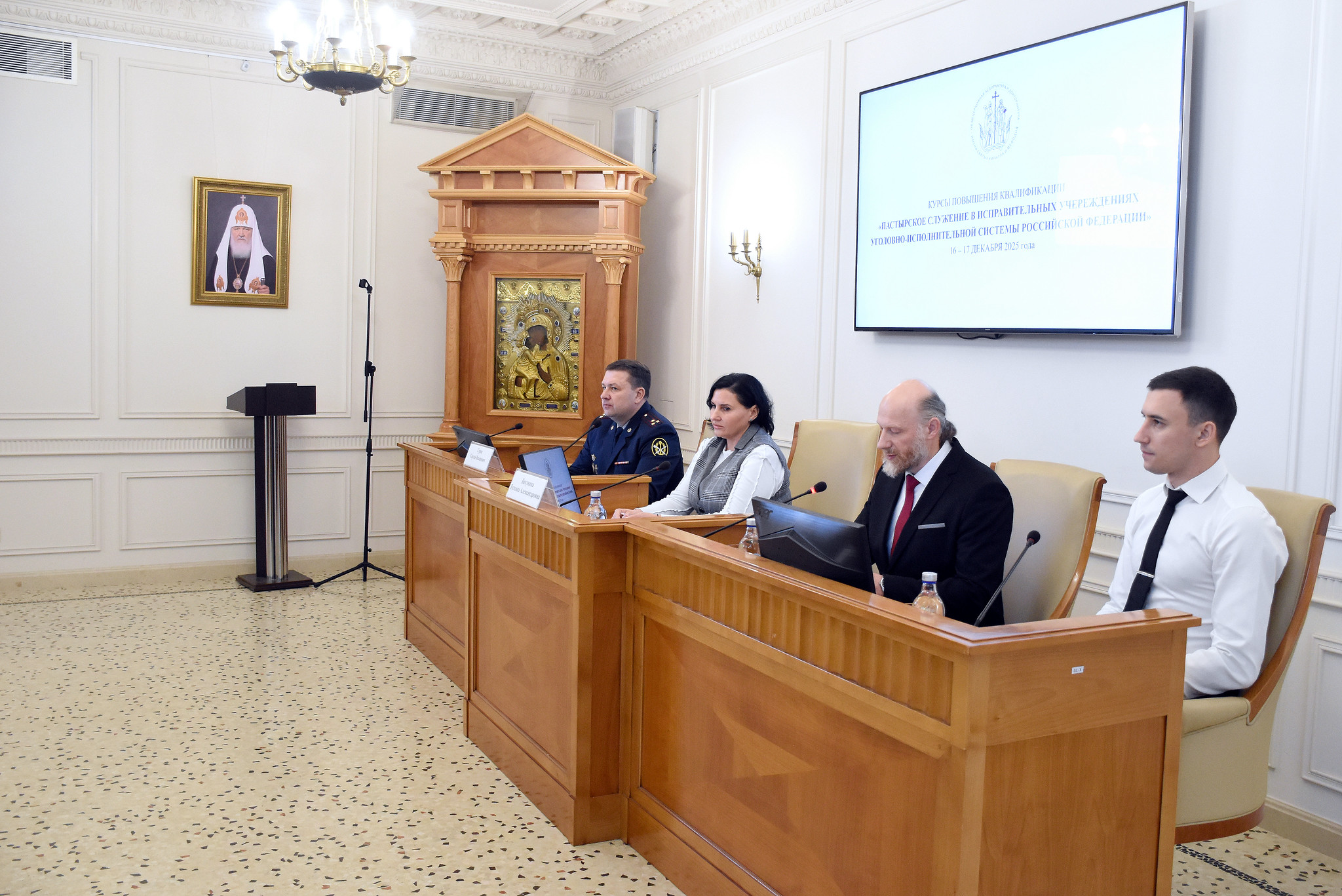В рамках сотрудничества Общецерковной аспирантуры и докторантуры имени святых равноапостольных Кирилла и Мефодия с Синодальным отделом Московского Патриархата по тюремному служению с 16 по 17 декабря 2025 года состоялись курсы повышения квалификации для второй группы священнослужителей, окормляющих исправительные учреждения уголовно-исполнительной системы.