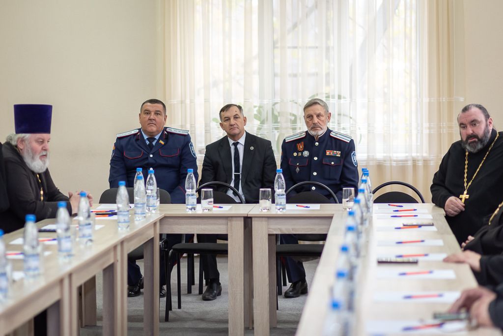 В собрании приняли участие председатель епархиального Отдела по взаимодействию с казачеством протоиерей Александр Маштанов, руководитель епархиального отдела образования протоиерей Сергей Яценко, руководитель сектора образования епархиального отдела по взаимодействию с казачеством протоиерей Василий Хадыкин, заведующий сектором по казачеству и связям с общественными организациями отдела социально-политических коммуникаций Администрации Октябрьского района Александр Филиппович Голощапов, духовники образовательных учреждений со статусом «казачьи», казачество.