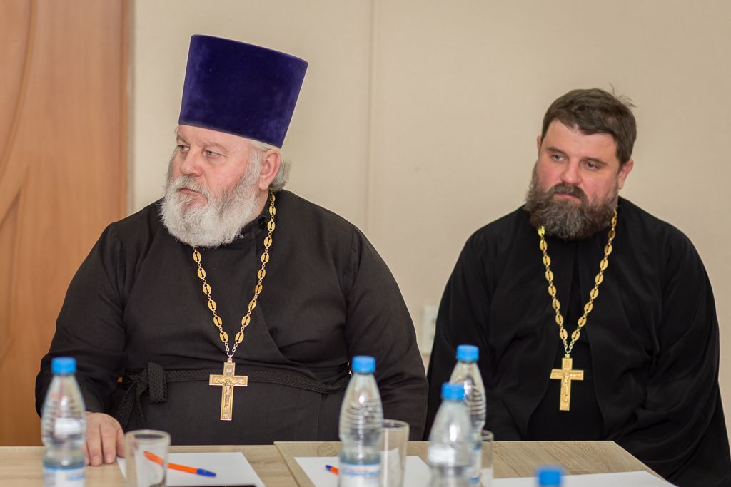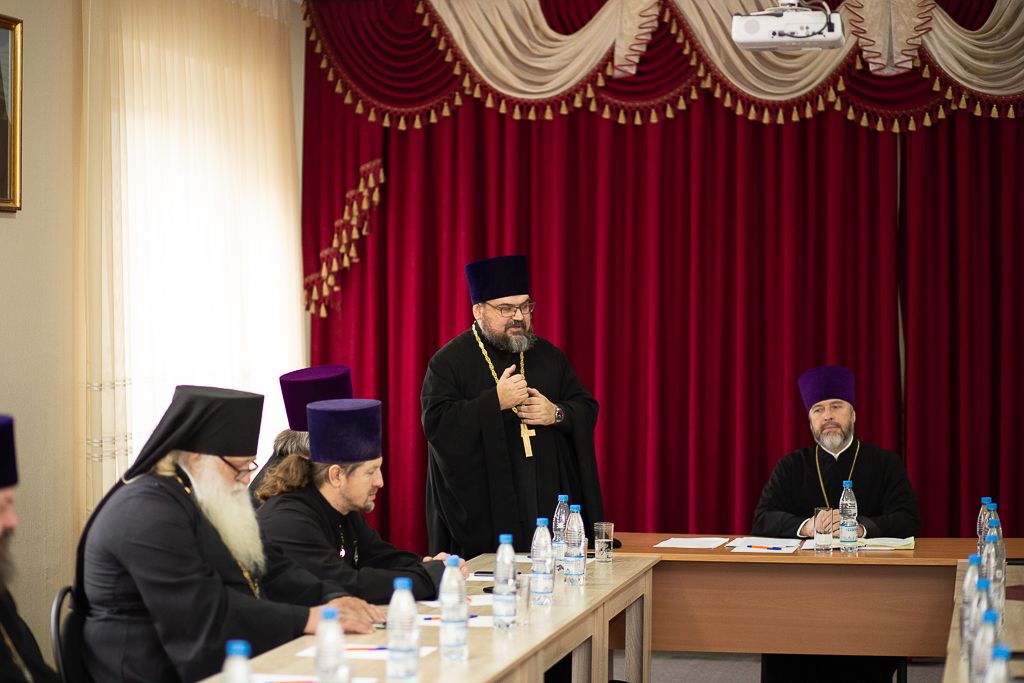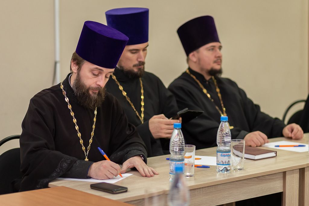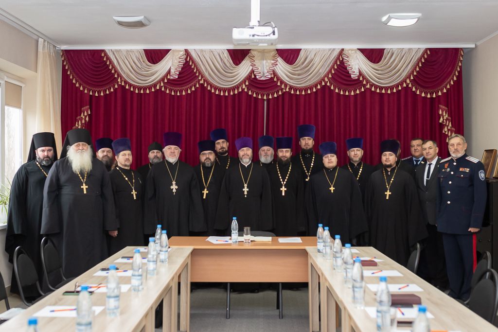 С докладом на тему «Глобальные вызовы современности и духовный выбор человека» выступил протоиерей Василий Хадыкин. Протоиерей Александр выступил с докладом по духовному окормлению казачьих образовательных учреждений. Духовникам были даны подробные рекомендации, инструкции и советы для успешной работы в деле духовно-нравственного и военно-патриотического воспитания казачьей молодежи.