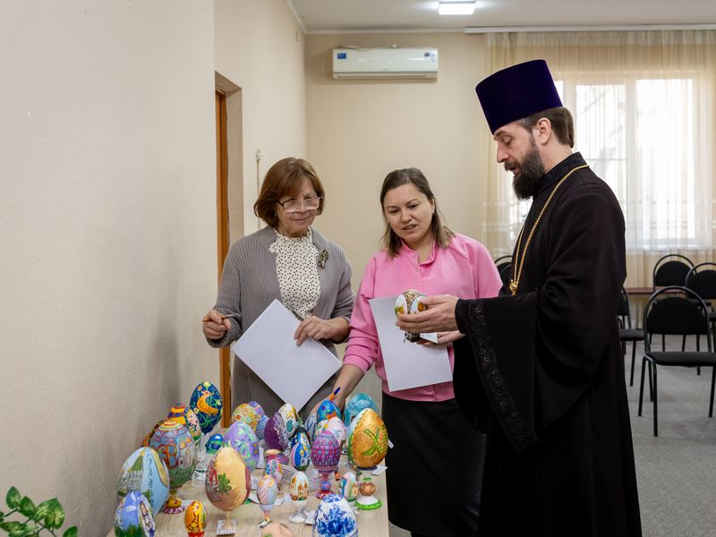 В актовом зале духовно-просветительского центра при Покровском кафедральном соборе города Шахты состоялось подведение итогов епархиального (регионального) этапа международного конкурса-фестиваля декоративно-прикладного искусства «Пасхальное яйцо 2026».