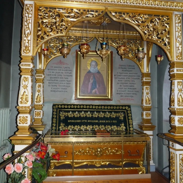 Вы сможете молиться за Божественной Литургией в храме, где находятся святые мощи Феодосия Кавказского.