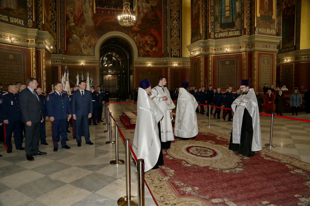 В День Старшинства Войска Донского – 448-летия служения донских казаков Государству Российскому и памяти атамана Матвея Ивановича Платова, в Новочеркасском Патриаршем Вознесенском Войсковом всеказачьем соборе состоялся благодарственный молебен во славу Войска Донского, который совершили настоятель собора протоиерей Георгий Сморкалов, Войсковой духовник протоиерей Сергий Маштанов и духовник Донецкого казачьего округа Всевеликого войска Донского протоиерей Василий Хадыкин.