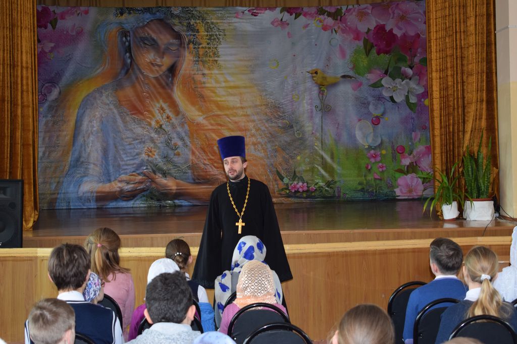 Перед началом Олимпиады с напутственным словом к ребятам обратился председатель отдела религиозного образования и катехизации Шахтинской епархии протоиерей Сергий Яценко.