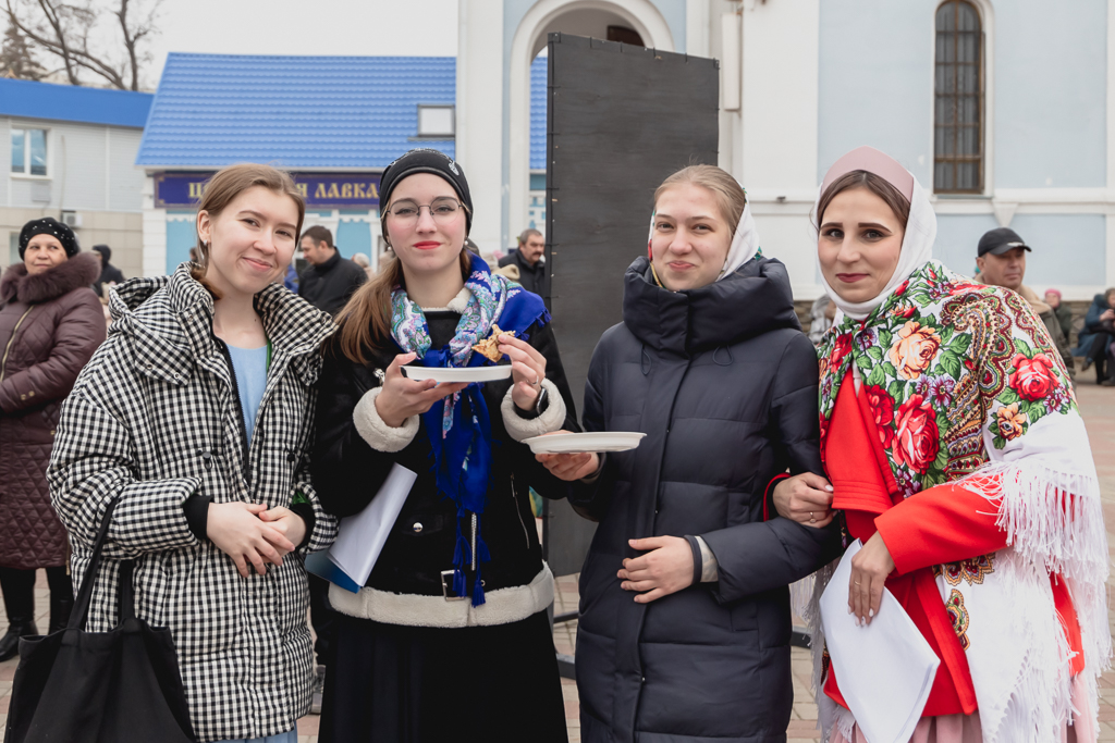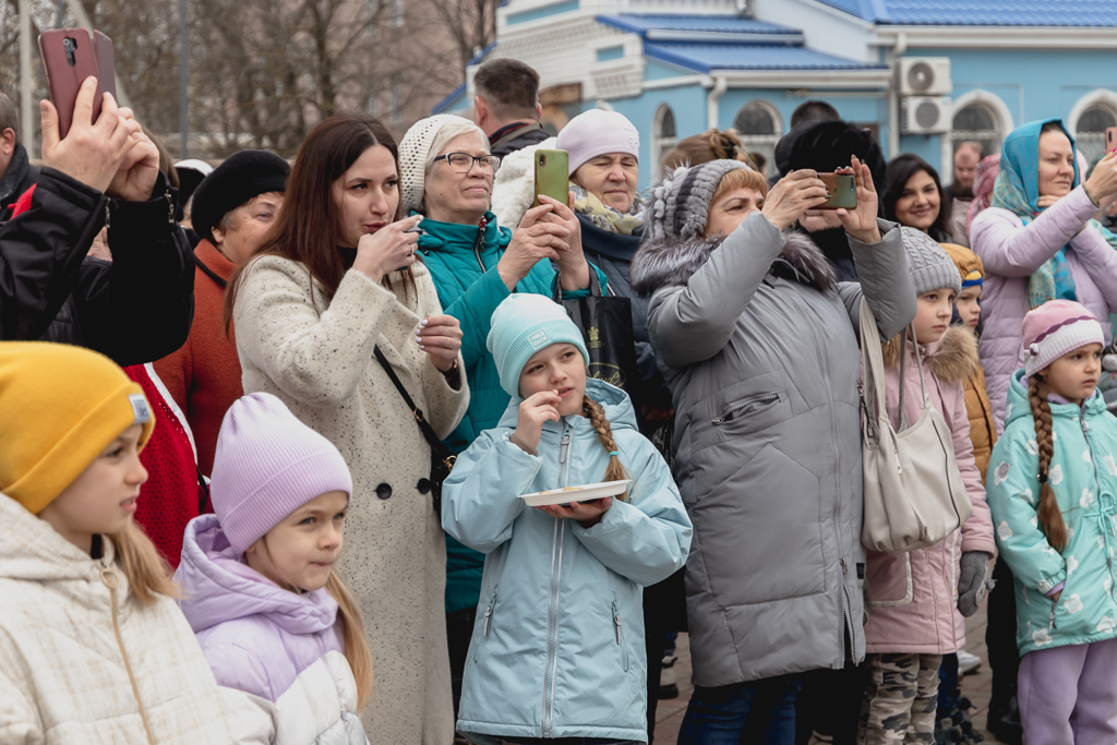 В последний день масленичной недели, в прощеное воскресенье, на Соборной площади города Шахты состоялся праздник, посвященный Масленице. В духе радости и ожидания весны жители города собрались, чтобы отметить этот день вместе.