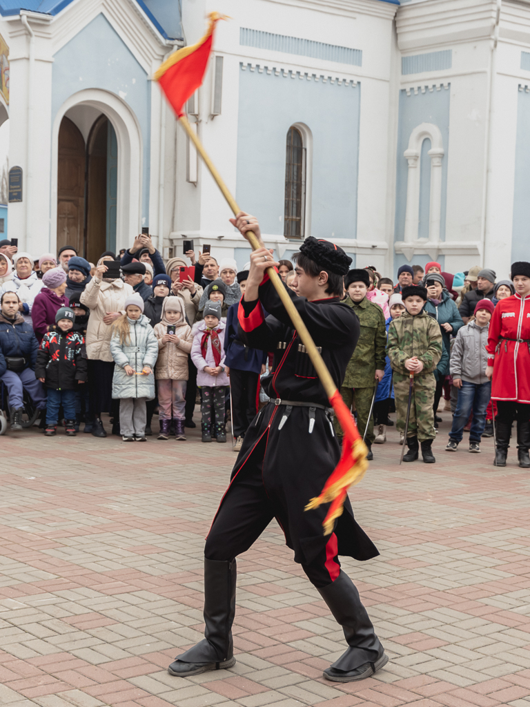 Со сцены прозвучали казачьи и народные песни в исполнении солистов хора кафедрального собора, детского архиерейского хора, учеников воскресной школы «Покров», вокального ансамбля «Любава», показательное выступление провел клуб фланкировки «Донцы».