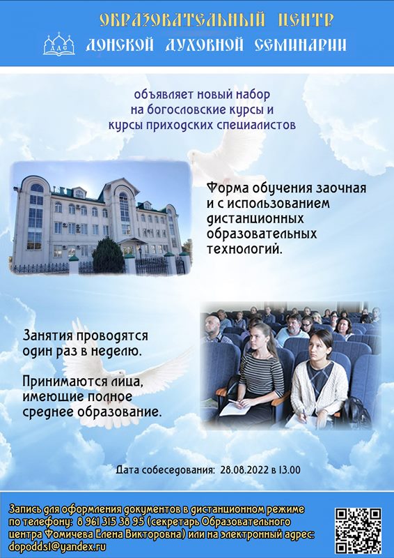 Образовательный центр Донской духовной семинарии объявляет набор на новый учебный год. Богословские курсы, Курсы приходских специалистов