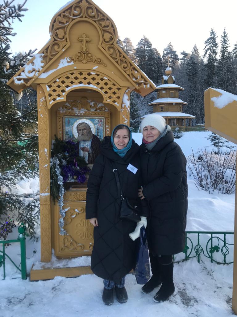 Далее группа прибыла в Серафимо-Дивеевский женский монастырь. Здесь приложились к мощам дивеевских святых и великого подвижника преподобного Серафима Саровского, к иконе Пресвятой Богородицы «Умиление», прошли с Богородичным правилом по Святой Канавке, окунулись в святых источниках не смотря на 26-ти градусный мороз. В светлый праздник Рождества Христова паломники помолились на ночной службе.