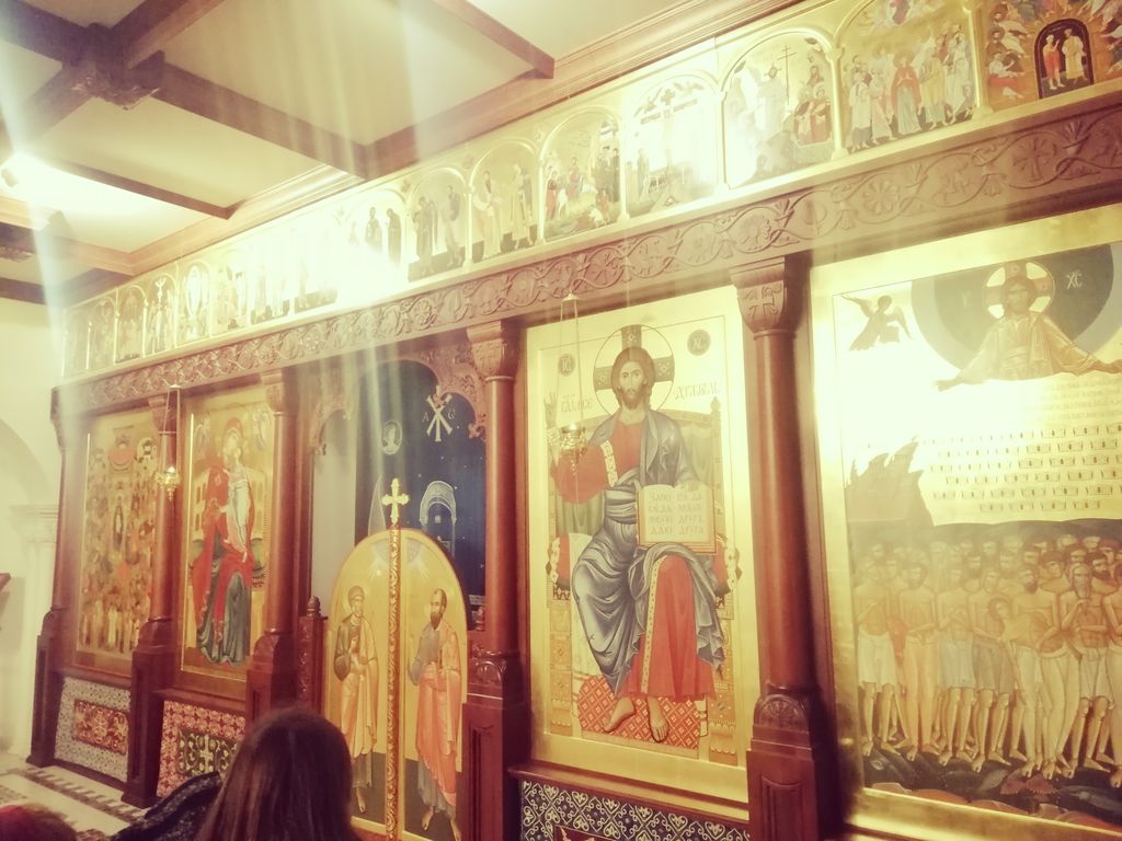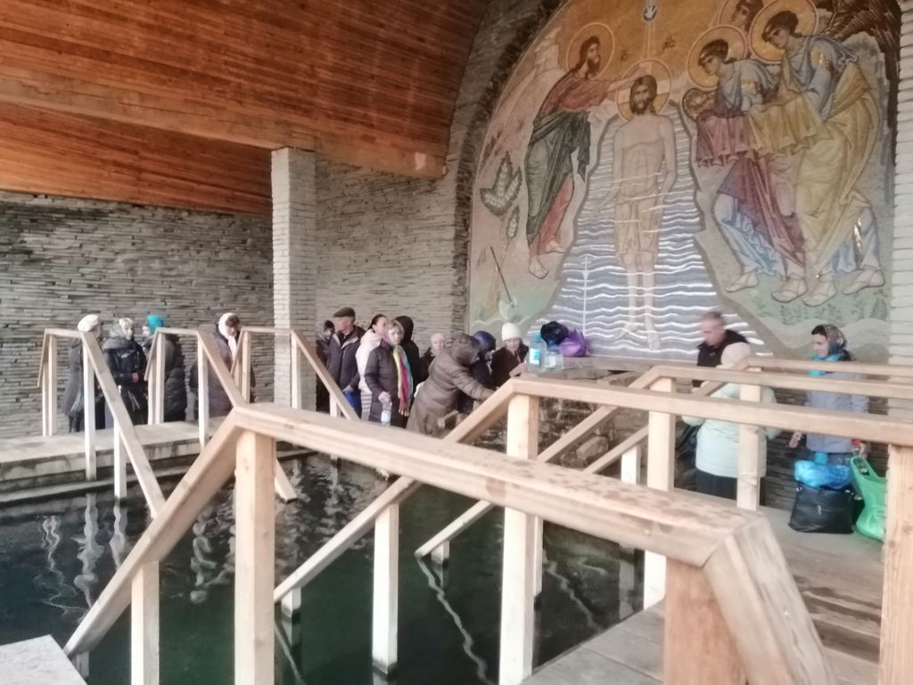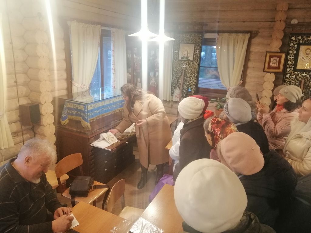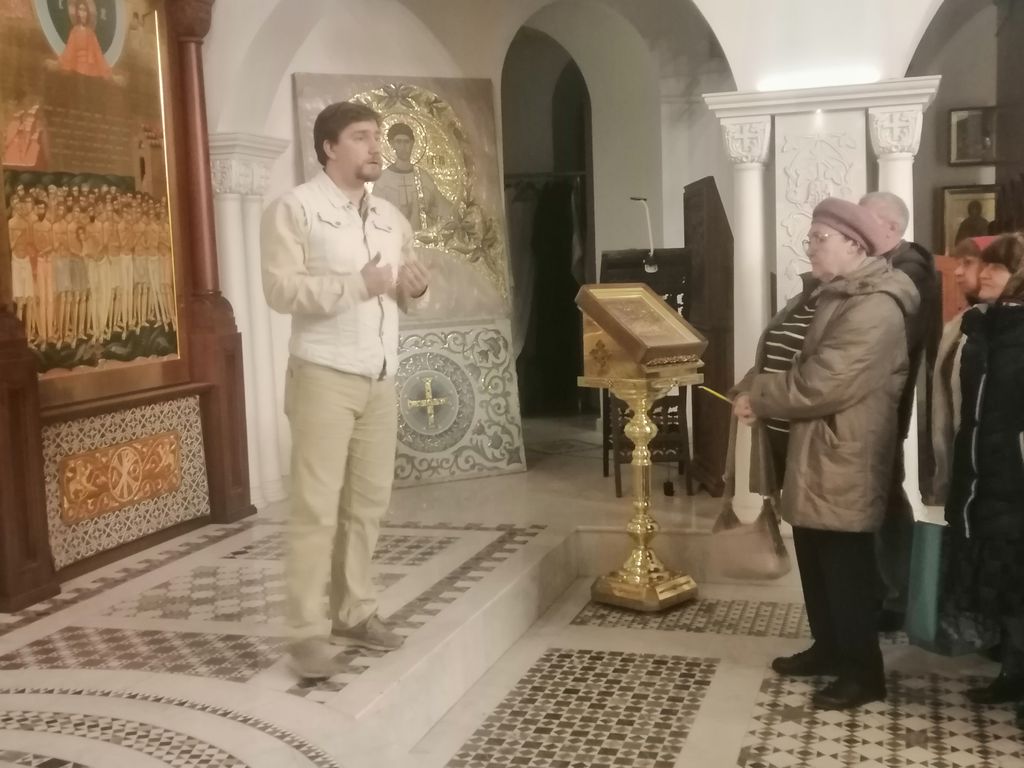В завершении поездки группа посетила приход святого Георгия Победоносца. Особенно впечатлила паломников экскурсия по нижнему храму и мастерским. На данный момент в храме действует Флористическая мастерская, Золотошвейная мастерская, Школа колокольного звона, театральное, волонтерское и молодежное движения, работает иконописная мастерская. Здесь создаются образы Господа Иисуса Христа и Богородицы, святых, а также изображаются православные праздники. Иконы в этой мастерской пишутся не обычной краской: сырье приготовляется вручную из минералов. Древние методики изучает иконописец Дмитрий Шестопалов. Помимо совершенствования навыков работы кистью, Дмитрий воплощает уникальный проект — иконостас для строящегося храма, который полностью будет состоять из мозаики. Несколько образов уже на финальной стадии. Так, икону Спасителя и Богородицы уже можно лицезреть – они временно помещены в нижнем храме Сорока Мучеников Севастийских.
