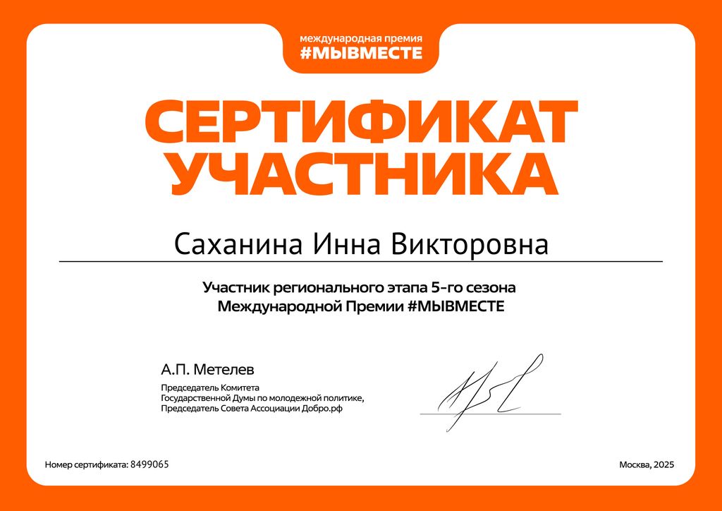 В августе и сентябре 2025 года проходила экспертная оценка Международной Премии #МЫВМЕСТЕ, в которой в качестве федерального эксперта приняла участие помощник протоиерея Романа Амплеева, руководителя епархиального отдела по взаимоотношениям Церкви с обществом, Саханина Инна Викторовна.