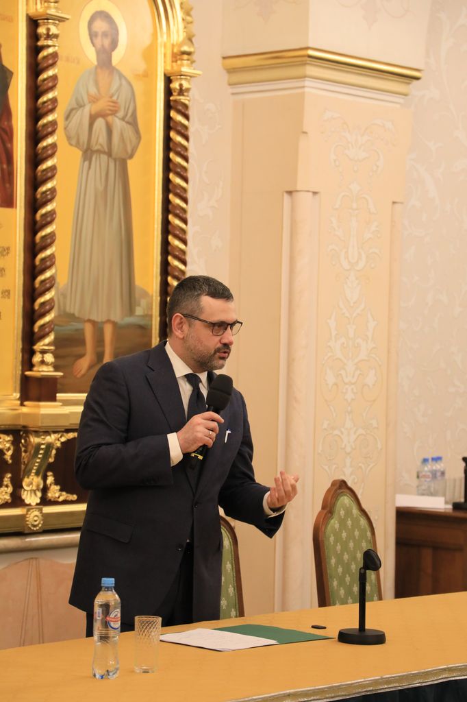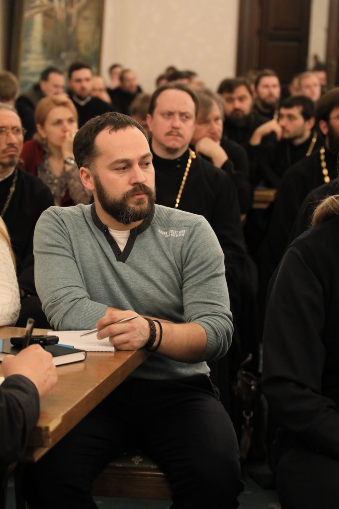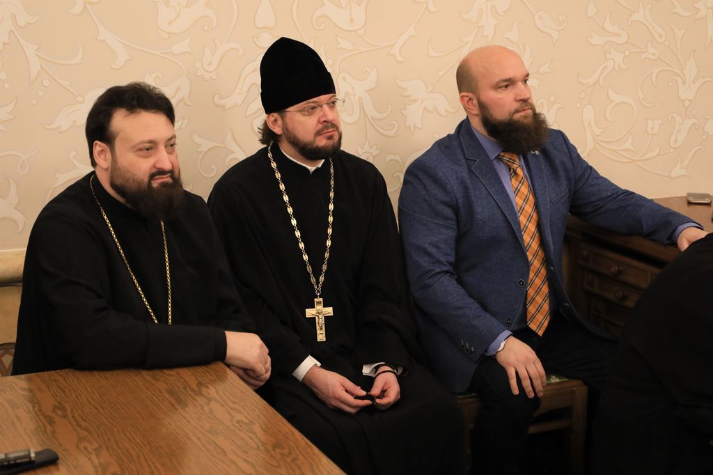 Пресс-секретарь Шахтинской епархии иерей Александр Теличкин и руководитель информационного отдела епархии Даниил Зырянов приняли участие во встрече с председателем Отдела по взаимоотношениям Церкви с обществом и средствами массовой информации Владимиром Романовичем Легойдой. Мероприятие прошло в рамках XXVII Международных Рождественских образовательных чтений.