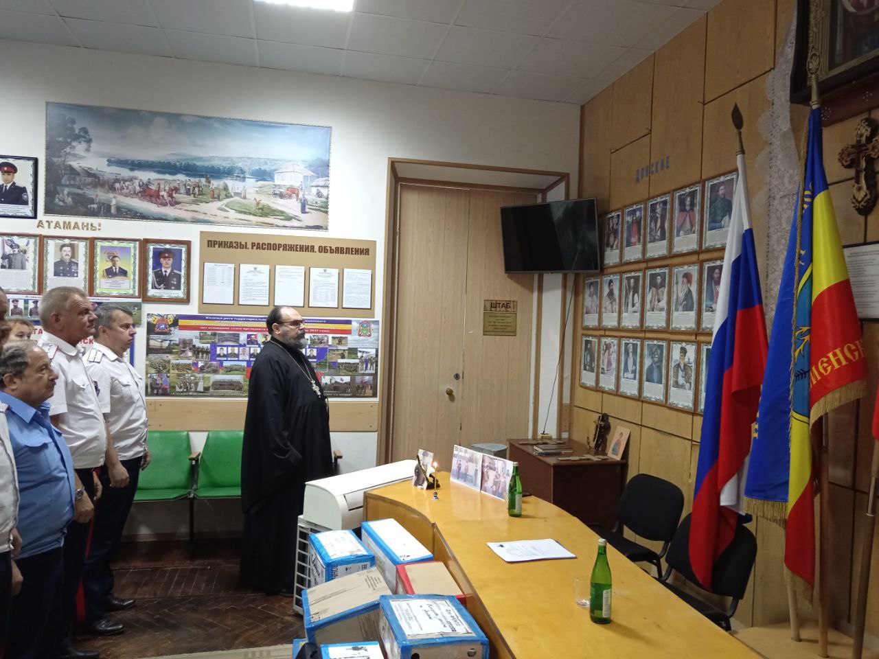 Духовник Донецкого округа ВКО ВВД протоиерей Василий Хадыкин принял участие в работе отдела Государственного казенного учреждения «Казаки Дона» по Донецкому округу. В совещании приняли участие специалисты ГКУ «Казаки Дона» северо-запада Ростовской области. Возглавил совещание руководитель отдела, окружной атаман казачий полковник Сидаков Алексей Николаевич. В ходе совещания были подведены итоги работы Отдела за первое полугодие 2024 года. Казаки также почтили память старейшего казака Донецкого округа, участника Великой Отечественной войны и штурма Берлина, Михаила Даниловича Краснова, отошедшего на днях ко Господу.