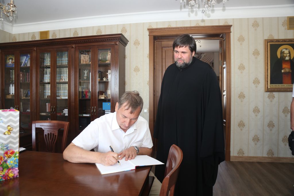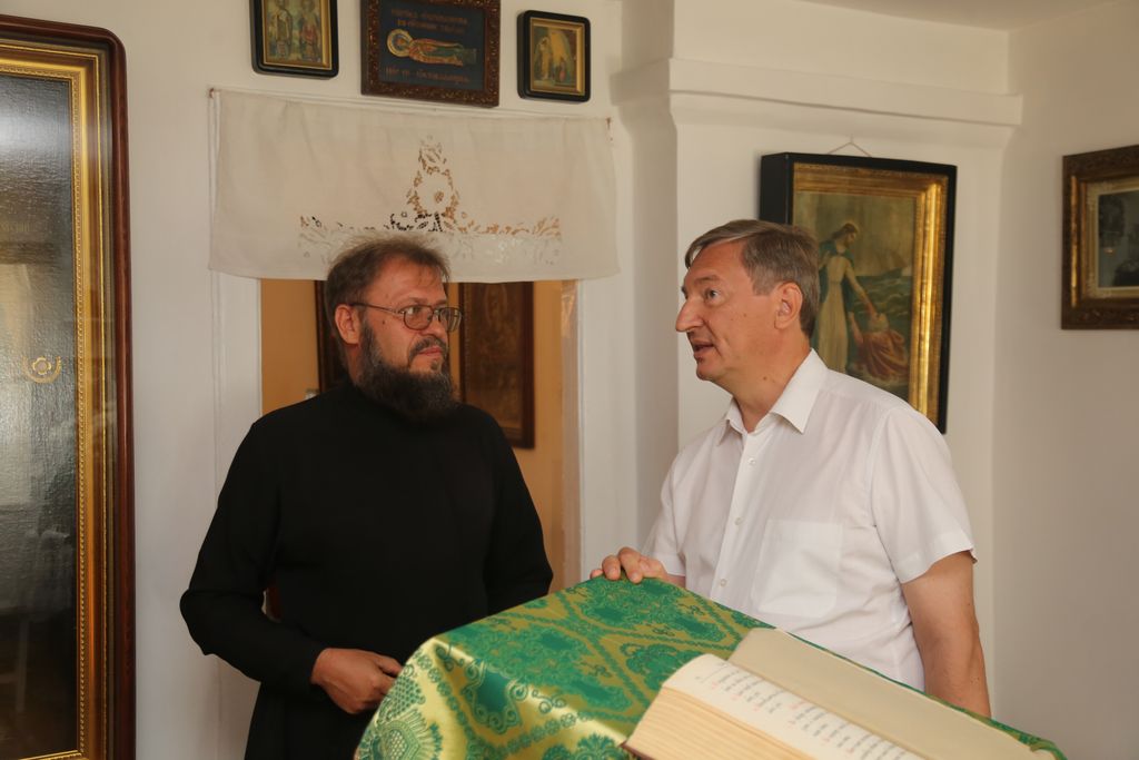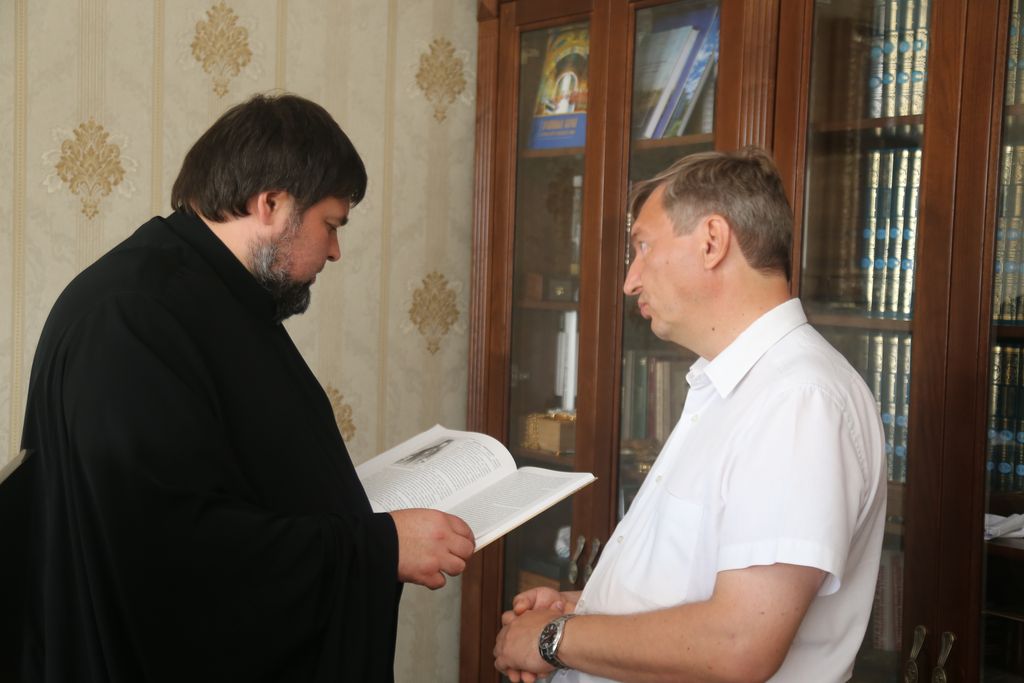В помещении духовно-просветительского центра Таганрогского благочиния состоялась рабочая встреча древлехранителя Ростовской епархии, настоятеля Никольского храма Таганрога иеромонаха Маврикия (Звягинцева) и древлехранителя Шахтинской епархии, старшего преподавателя ИСОиП (филиала) ДГТУ в г. Шахты И.Г. Шаркова. В ходе встречи состоялся обмен мнениями и исследовательской информацией по ряду вопросов церковной истории Дона и Приазовья. Отцу Маврикию была подарена монография И.Г. Шаркова и Л.Б. Томилиной «Донской и Екатеринославский отделы Императорского Православного Палестинского Общества в конце XIX – начале XX веков: социокультурная и просветительская деятельность на Юге Российской империи» с дарственной надписью. Данная монография была подготовлена в рамках реализации научного проекта, победителя конкурса грантов 2021 года на лучшие проекты фундаментальных научных исследований по теме «Россия и Ближний Восток: исторические, политические, археологические и культурные контакты и связи», проводимого совместно Российским Фондом фундаментальных исследований (РФФИ, ныне РЦНИ) и Международной общественной организацией «Императорское Православное Палестинское Общество». Древлехранитель Ростовской епархии иеромонах Маврикий (Звягинцев) сердечно поблагодарил шахтинцев за информационно ценный подарок, отметив его значимость при подготовке жития новопрославленного подвижника благочестия Дона праведного протоиерея Иоанна Домовского.