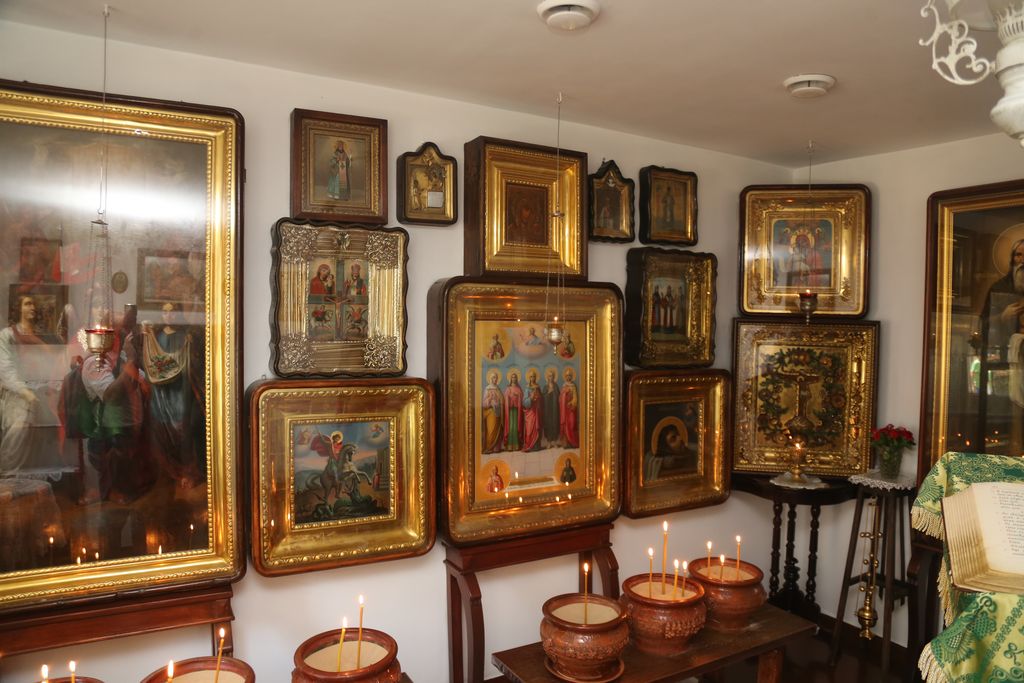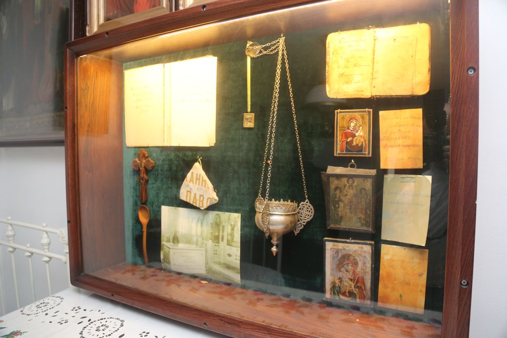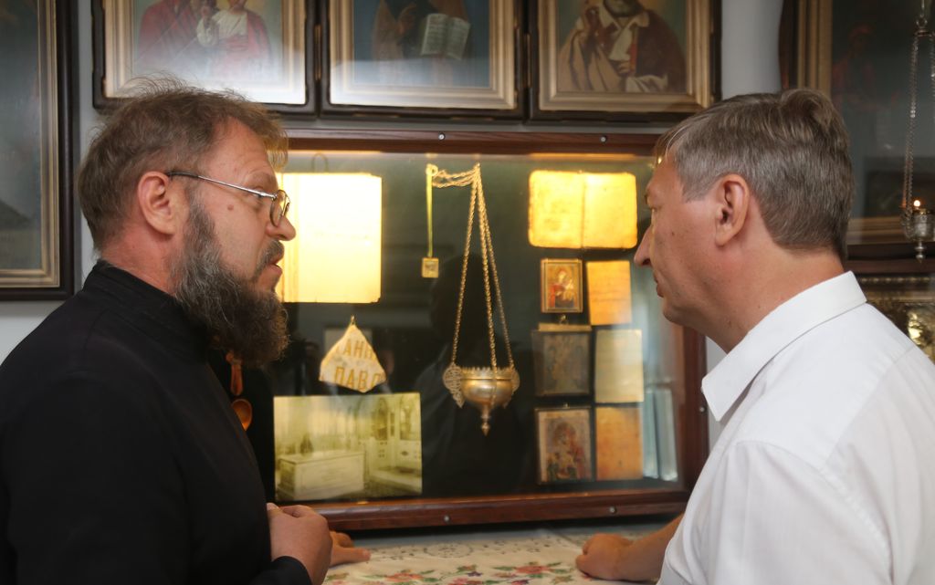 Посещение Таганрога началось с келии святого праведного Павла Таганрогского, в которой старец провел поздние годы своей жизни и скончался в 1879 году. Келия маленькая, очень уютная, в ней чувствуется дух времени, в котором жил подвижник благочестия. Поколения почитателей памяти святого Павла сохранили обстановку, предметы быта, и, самое главное – святые иконы праведника и его учеников. Две иконы из келии были освящены святым праведным Иоанном Кронштадтским, о чём имеется на них соответствующая надпись. О жизни блаженного старца в Таганроге, о восстановленной обстановке келии рассказал паломникам клирик Никольского храма иеродиакон Ефрем (Устименко). Древлехранитель Шахтинской епархии и о. Ефрем обсудили происхождение и историю ряда старинных икон келии, в результате уточнили их атрибуцию. В келии имеются евлогии Палестины и Святого Афона второй половины XIX – начала XX веков.